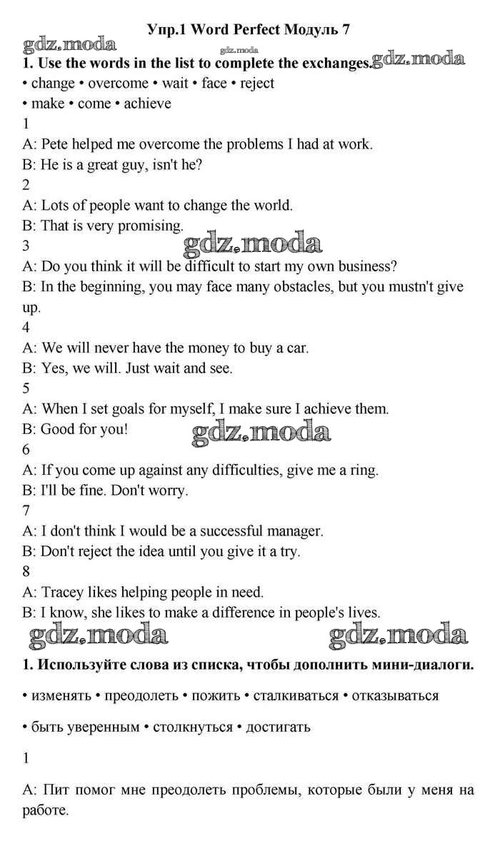 ОТВЕТ на задание № 1 Учебник по Английскому языку 11 класс Эванс Spotlight
