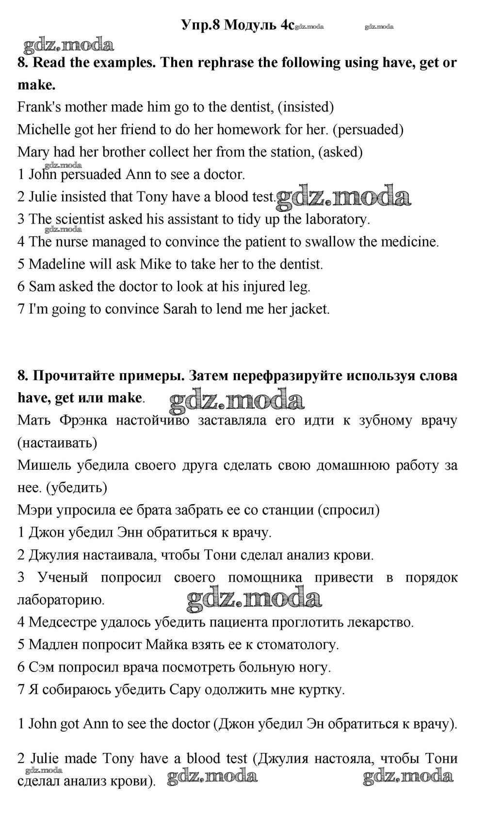 ГДЗ решение к заданию № 8 Английский язык 11 класс Эванс Spotlight Просвещение 2015 ФГОС бесплатно на гдз.мода!