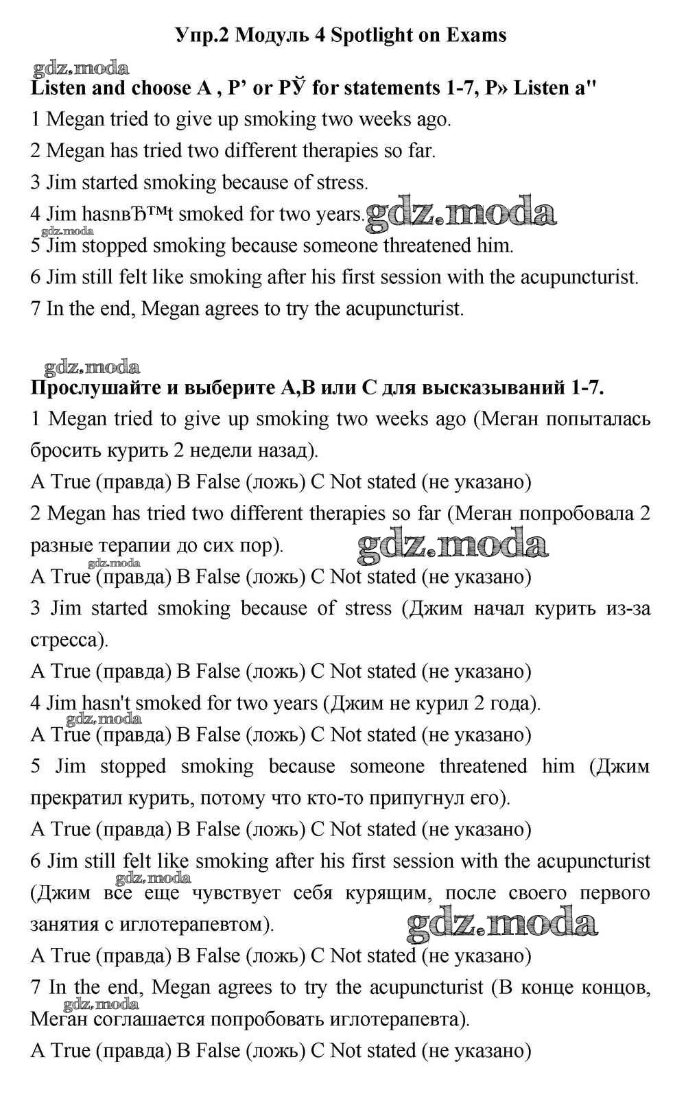 ОТВЕТ на задание № 2 Учебник по Английскому языку 11 класс Эванс Spotlight