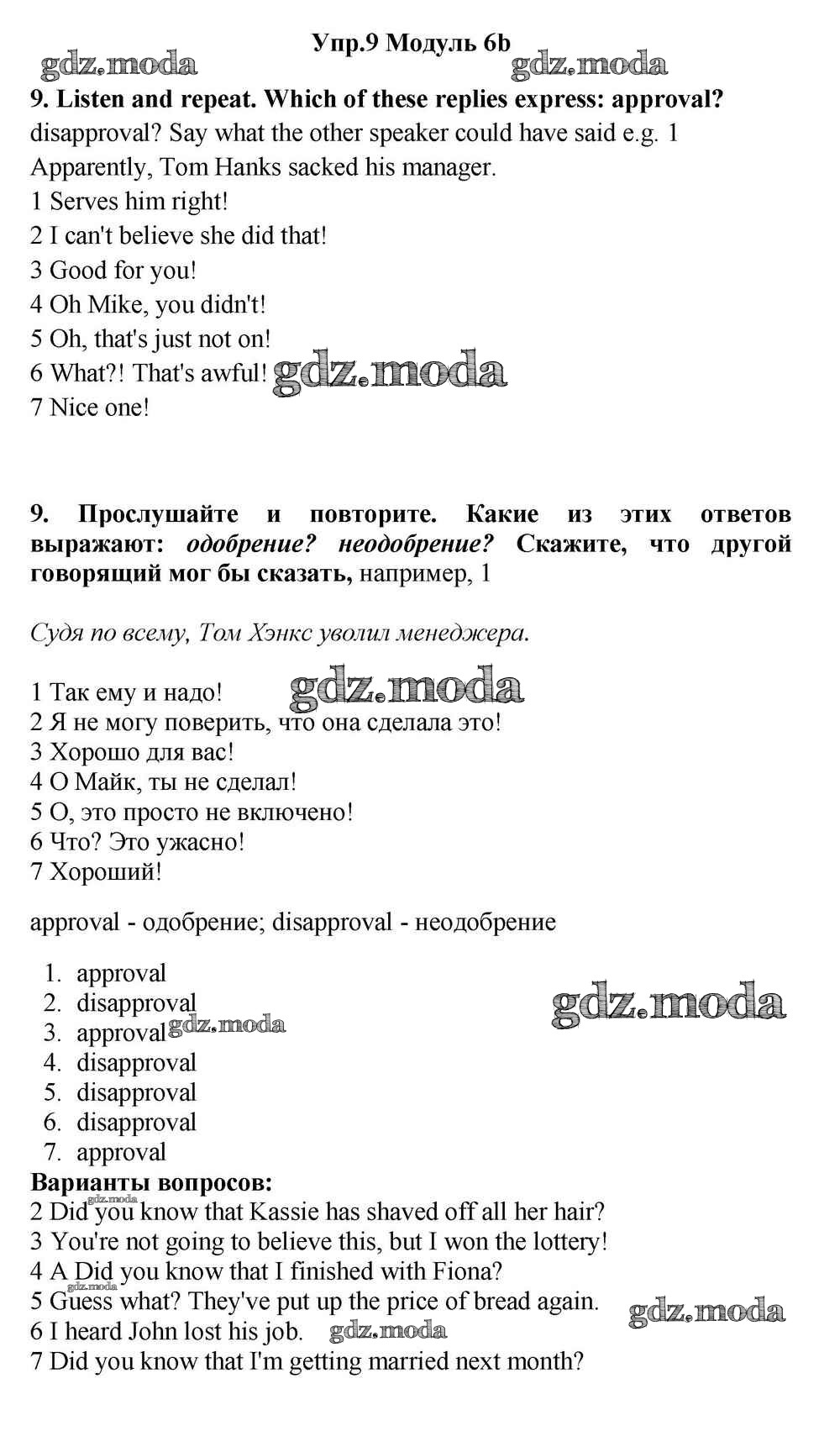 ГДЗ решение к заданию № 9 Английский язык 11 класс Эванс Spotlight Просвещение 2015 ФГОС бесплатно на гдз.мода!