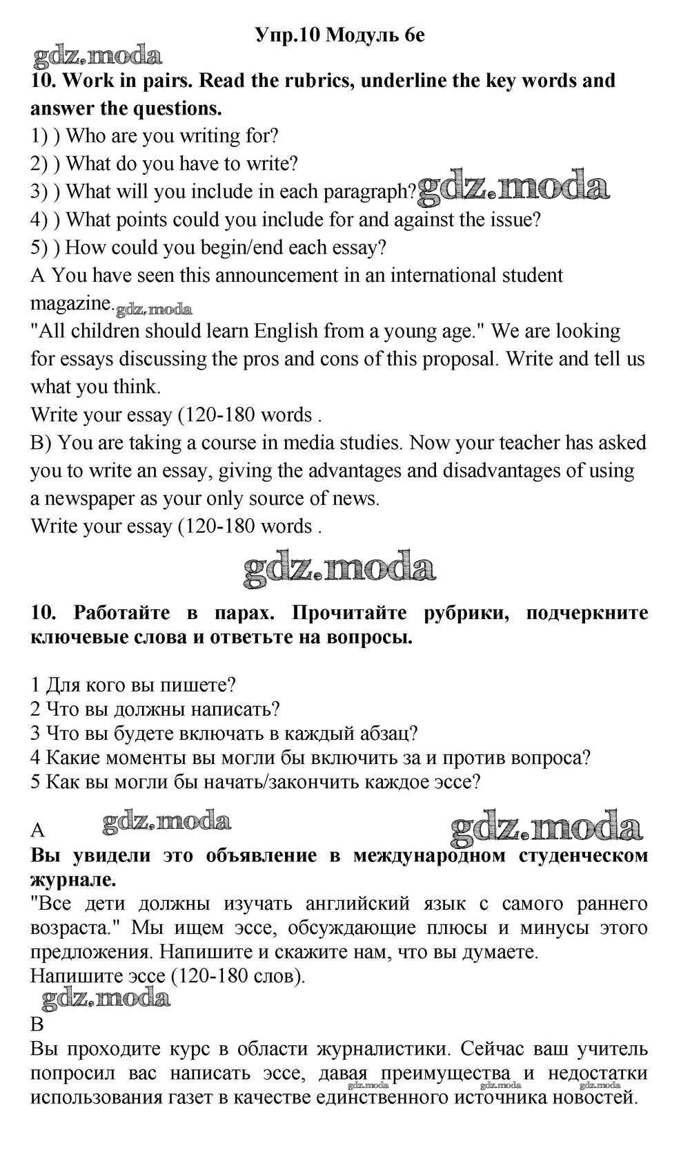 ГДЗ решение к заданию № 10 Английский язык 11 класс Эванс Spotlight Просвещение 2015 ФГОС бесплатно на гдз.мода!