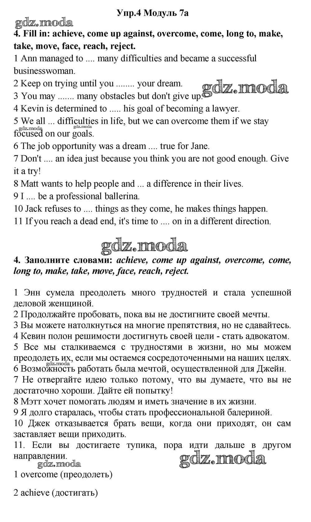 ГДЗ решение к заданию № 4 Английский язык 11 класс Эванс Spotlight Просвещение 2015 ФГОС бесплатно на гдз.мода!