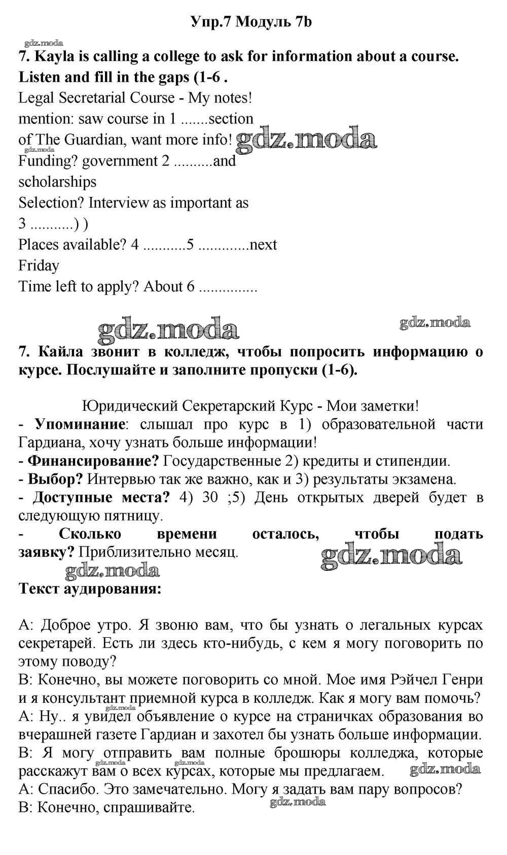 ГДЗ решение к заданию № 7 Английский язык 11 класс Эванс Spotlight Просвещение 2015 ФГОС бесплатно на гдз.мода!