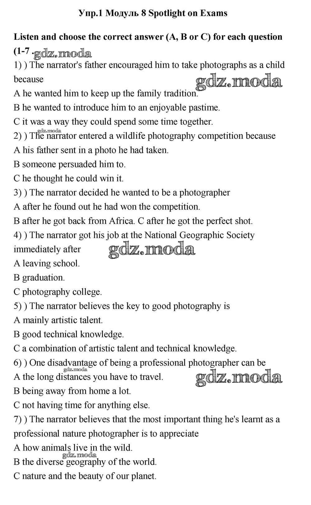 ГДЗ решение к заданию № 1 Английский язык 11 класс Эванс Spotlight Просвещение 2015 ФГОС бесплатно на гдз.мода!