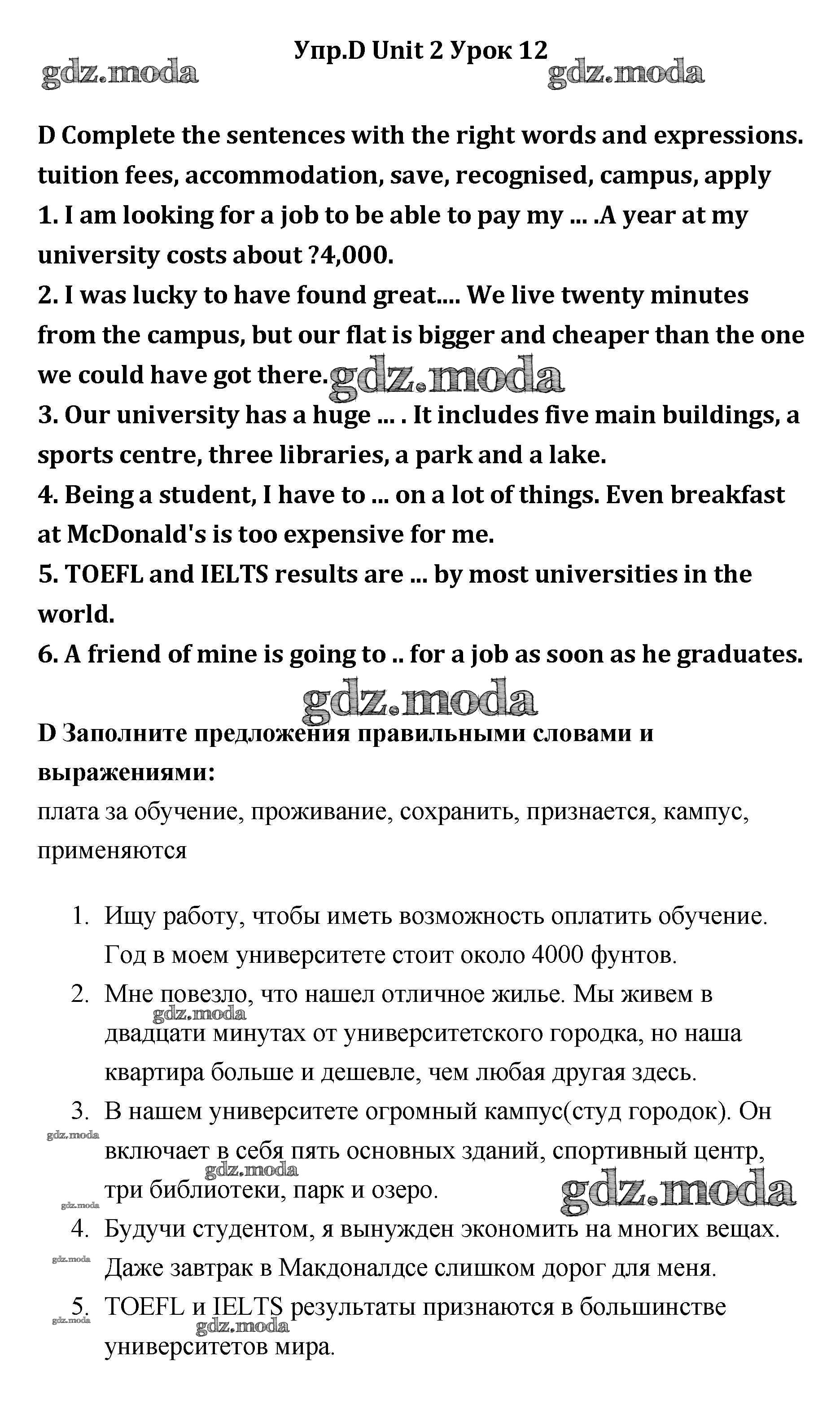 ОТВЕТ на задание № D Учебник по Английскому языку 11 класс Кауфман Happy English
