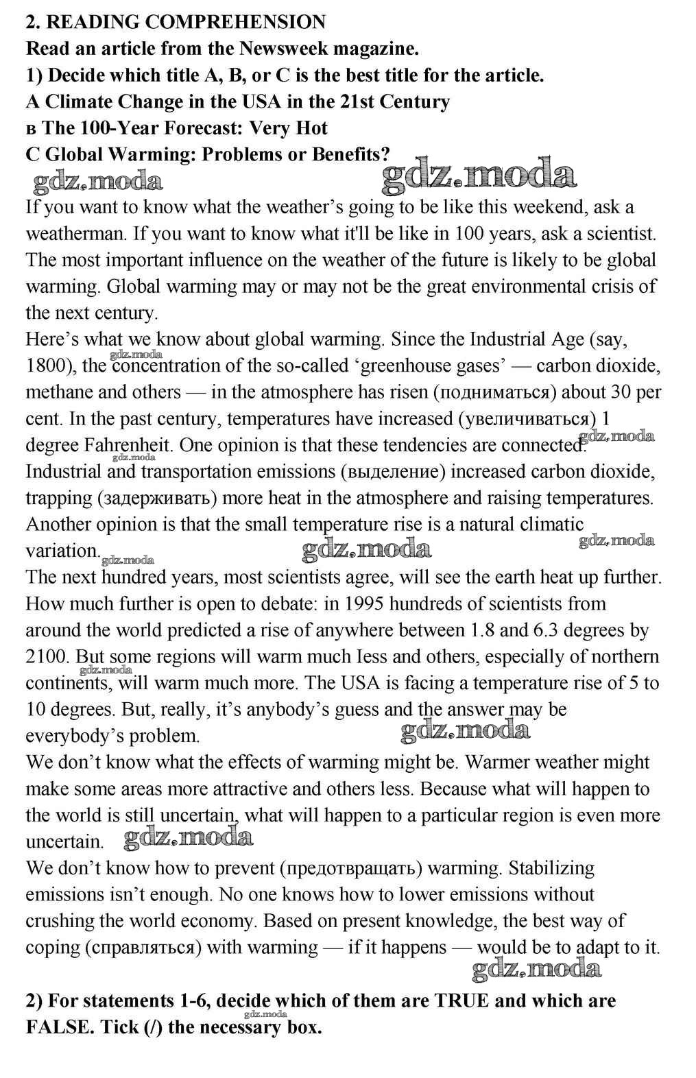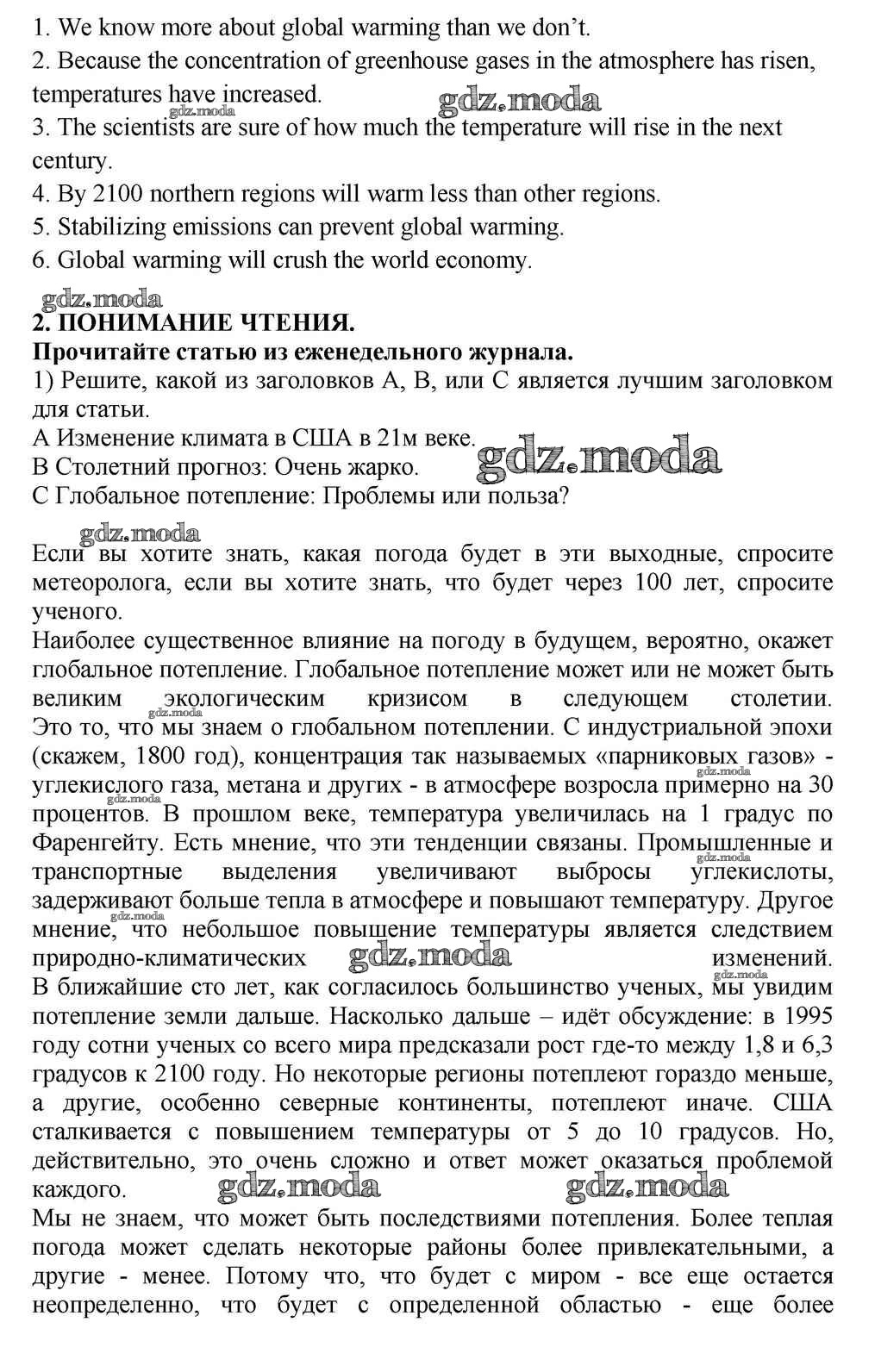 ГДЗ решение к заданию № 2 Английский язык 10-11 класс Кузовлёв В.П. Просвещение 2012 ФГОС бесплатно на гдз.мода!