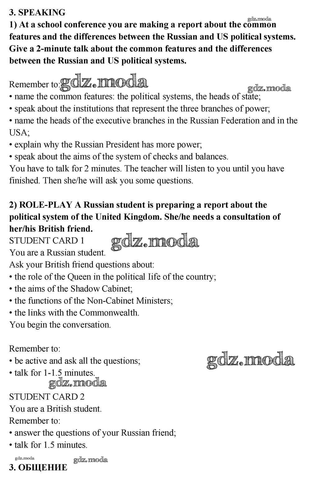ГДЗ решение к заданию № 3 Английский язык 10-11 класс Кузовлёв В.П. Просвещение 2012 ФГОС бесплатно на гдз.мода!