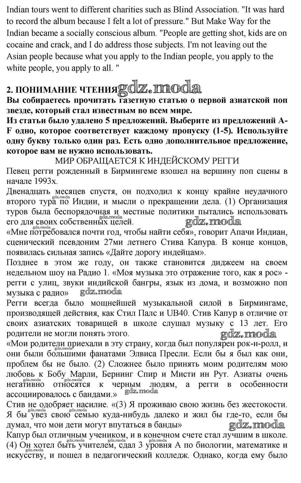 ГДЗ решение к заданию № 2 Английский язык 10-11 класс Кузовлёв В.П. Просвещение 2012 ФГОС бесплатно на гдз.мода!