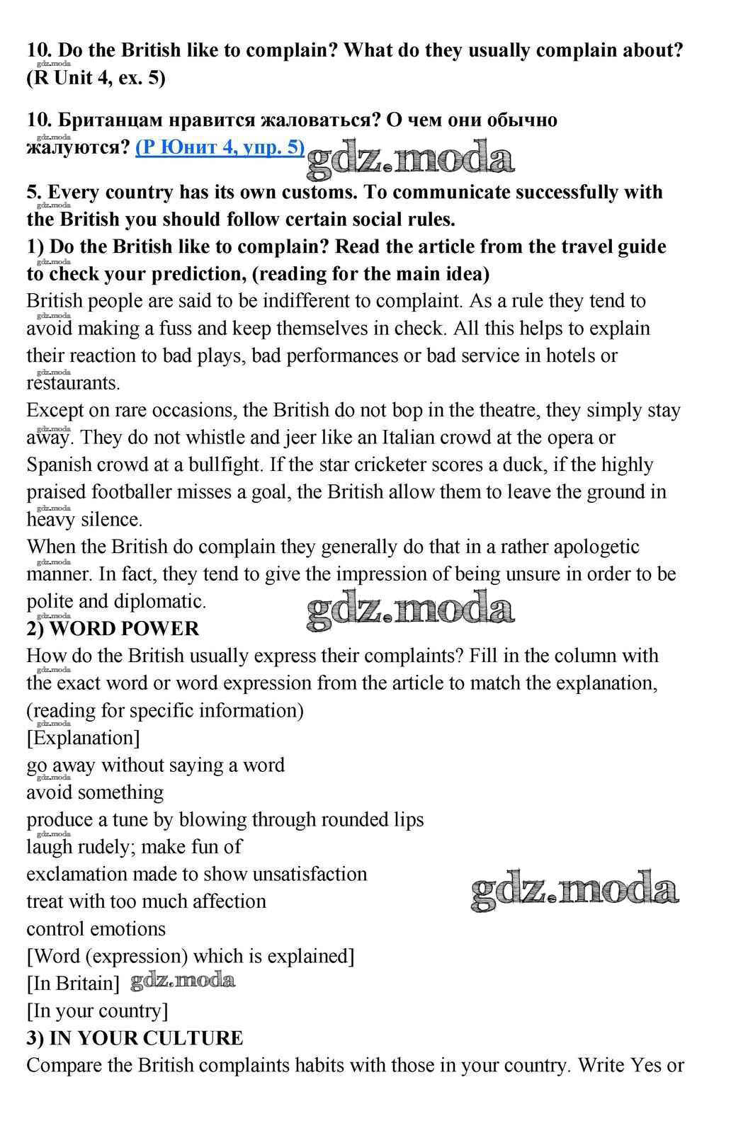 ГДЗ решение к заданию № 10 Английский язык 10-11 класс Кузовлёв В.П. Просвещение 2012 ФГОС бесплатно на гдз.мода!