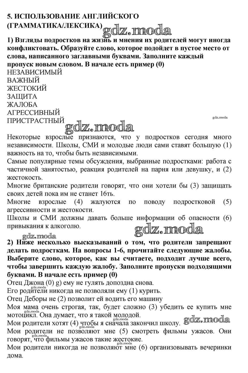 ГДЗ решение к заданию № 5 Английский язык 10-11 класс Кузовлёв В.П. Просвещение 2012 ФГОС бесплатно на гдз.мода!