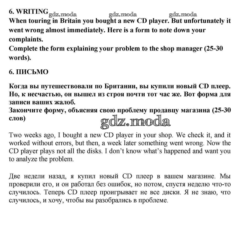 ГДЗ решение к заданию № 6 Английский язык 10-11 класс Кузовлёв В.П. Просвещение 2012 ФГОС бесплатно на гдз.мода!
