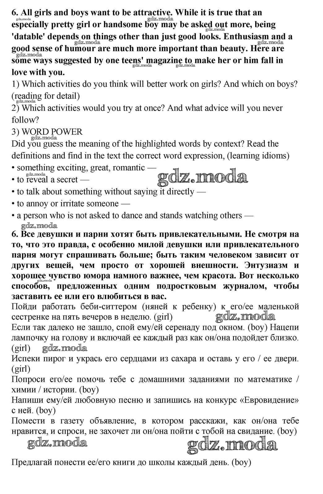 ГДЗ решение к заданию № 6 Английский язык 10-11 класс Кузовлёв В.П. Просвещение 2012 ФГОС бесплатно на гдз.мода!