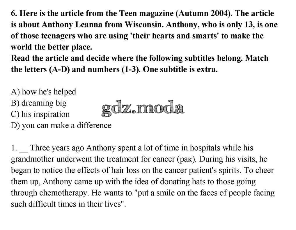 ГДЗ решение к заданию № 6 Английский язык 10-11 класс Кузовлёв В.П. Просвещение 2012 ФГОС бесплатно на гдз.мода!