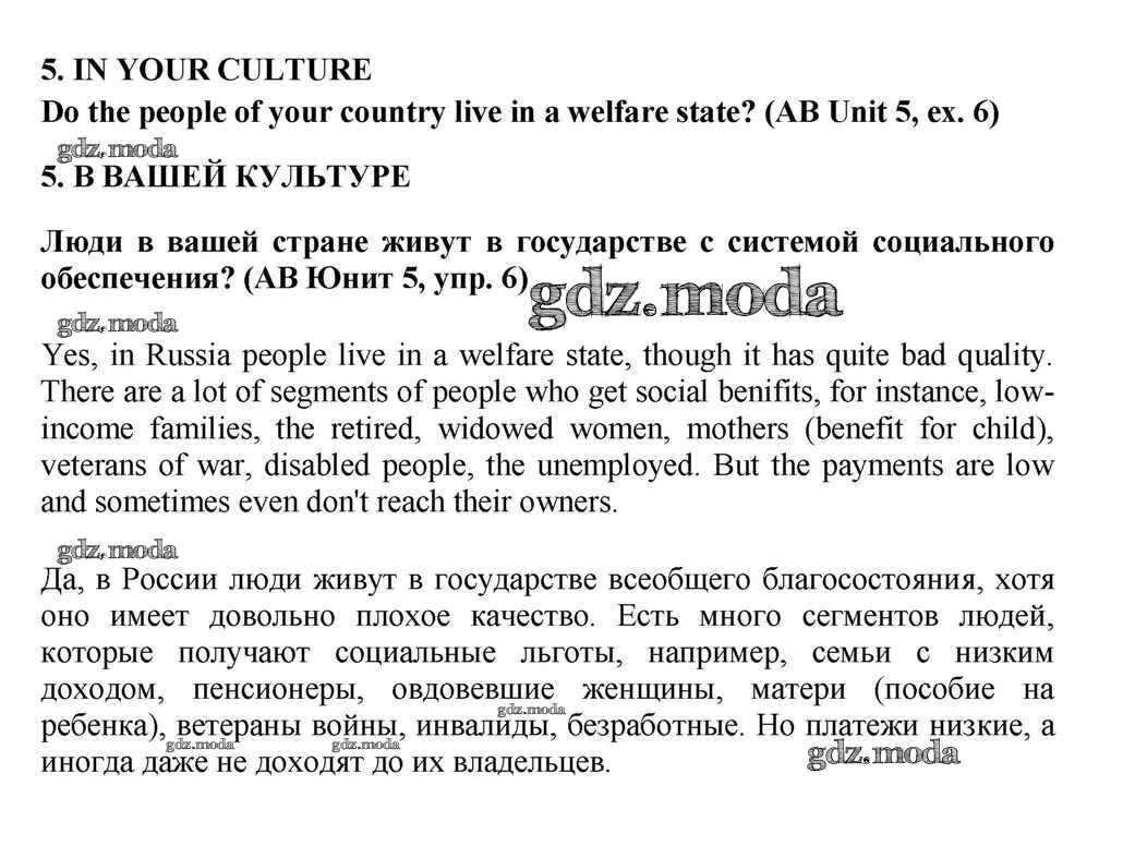 ГДЗ решение к заданию № 5 Английский язык 10-11 класс Кузовлёв В.П. Просвещение 2012 ФГОС бесплатно на гдз.мода!
