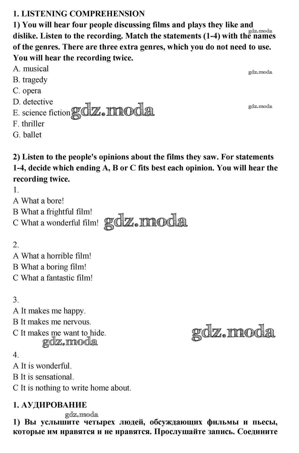 ГДЗ решение к заданию № 1 Английский язык 10-11 класс Кузовлёв В.П. Просвещение 2012 ФГОС бесплатно на гдз.мода!