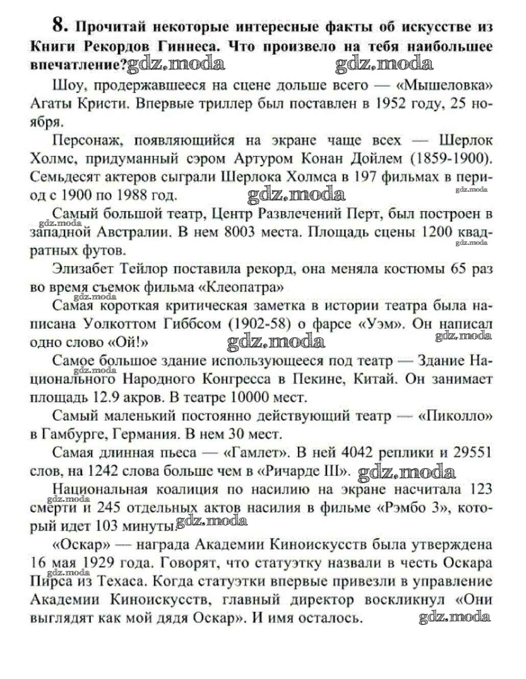 ГДЗ решение к заданию № 8 Английский язык 10-11 класс Кузовлёв В.П. Просвещение 2012 ФГОС бесплатно на гдз.мода!