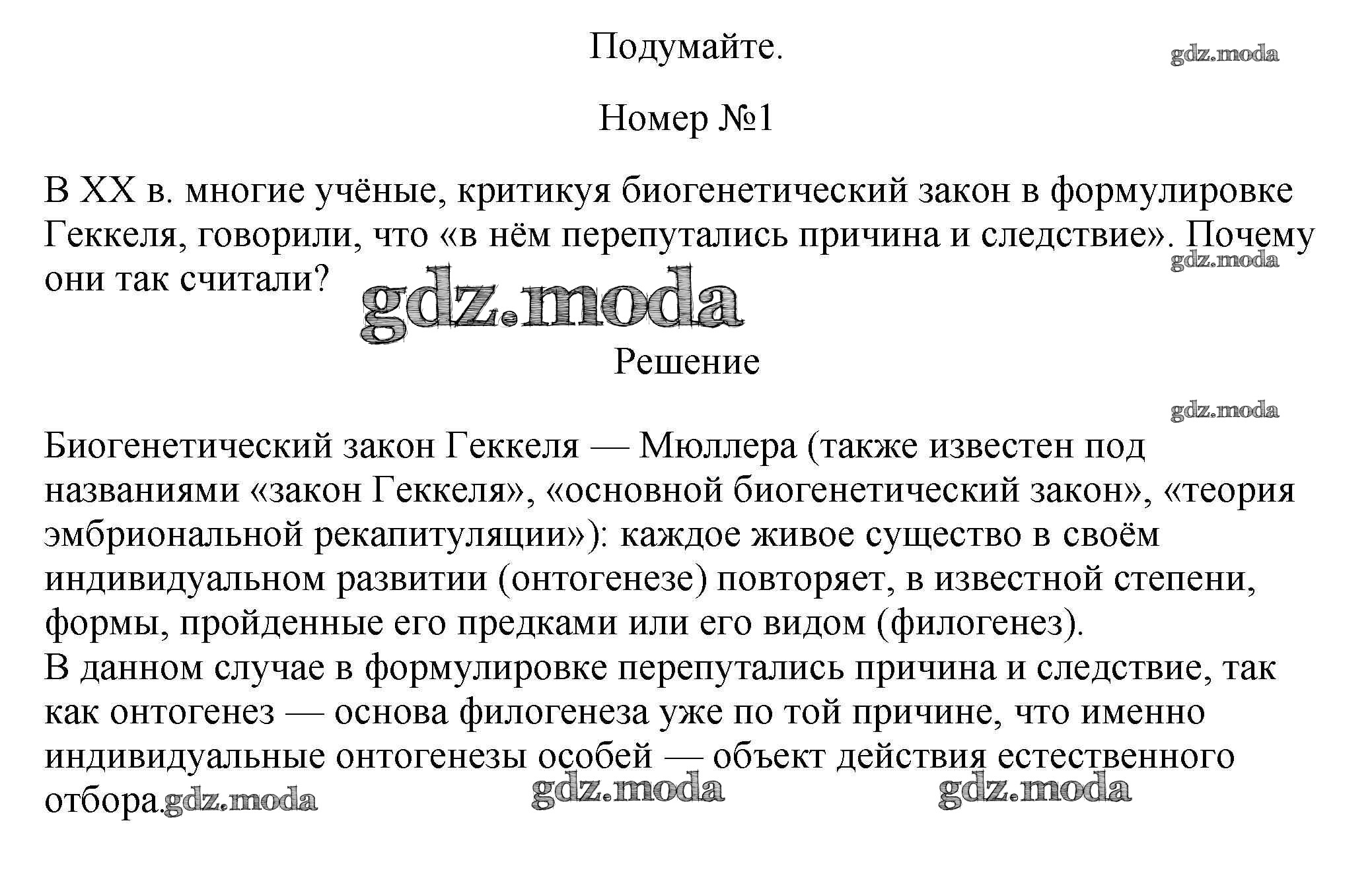 §3. индивидуальные развитие организмов. биогенетический закон / подумайте / 1