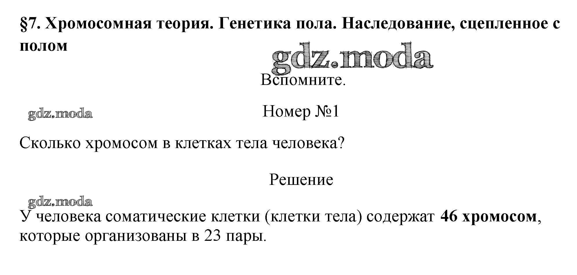 §7. хромосомная теория. генетика пола. наследование, сцепленное с полом / вспомните / 1