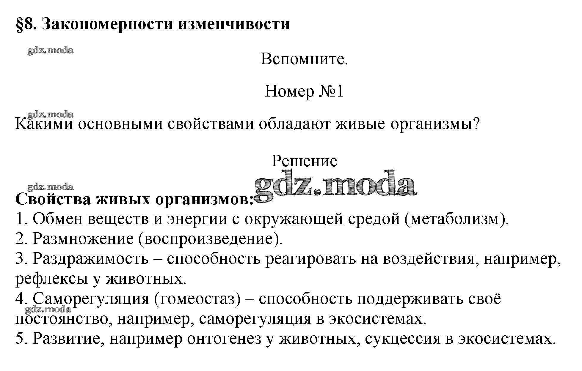 ГДЗ решение к заданию № 1 Биология 11 класс Пасечник (Базовый уровень) Просвещение 2018 Базовый уровень ФГОС бесплатно на гдз.мода!