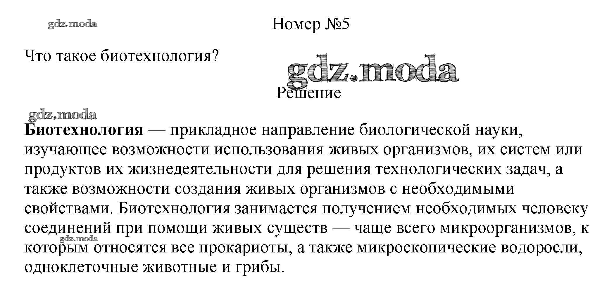 ГДЗ решение к заданию № 5 Биология 11 класс Пасечник (Базовый уровень) Просвещение 2018 Базовый уровень ФГОС бесплатно на гдз.мода!