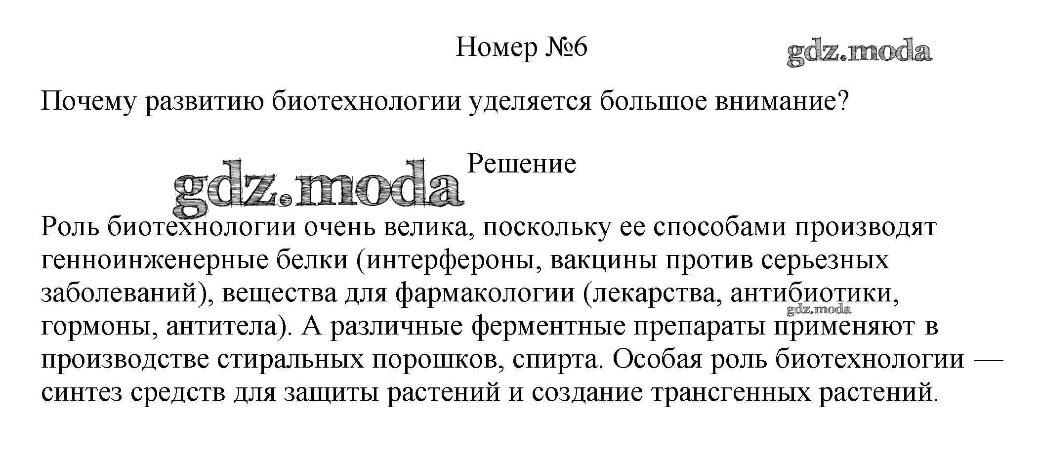 ГДЗ решение к заданию № 6 Биология 11 класс Пасечник (Базовый уровень) Просвещение 2018 Базовый уровень ФГОС бесплатно на гдз.мода!