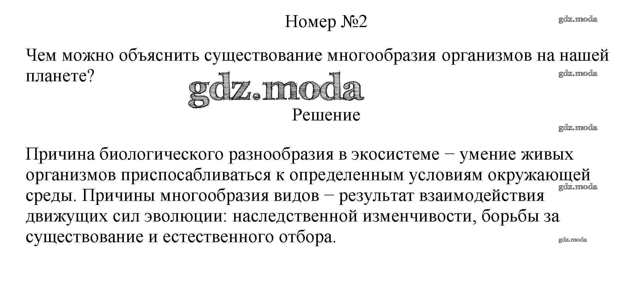 ГДЗ решение к заданию № 2 Биология 11 класс Пасечник (Базовый уровень) Просвещение 2018 Базовый уровень ФГОС бесплатно на гдз.мода!