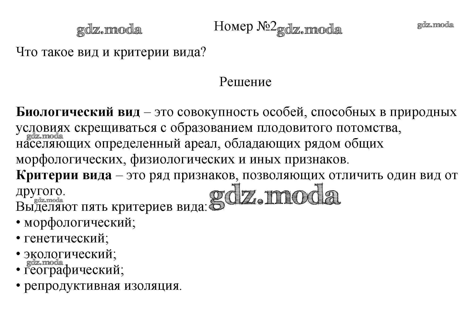 ГДЗ решение к заданию № 2 Биология 11 класс Пасечник (Базовый уровень) Просвещение 2018 Базовый уровень ФГОС бесплатно на гдз.мода!