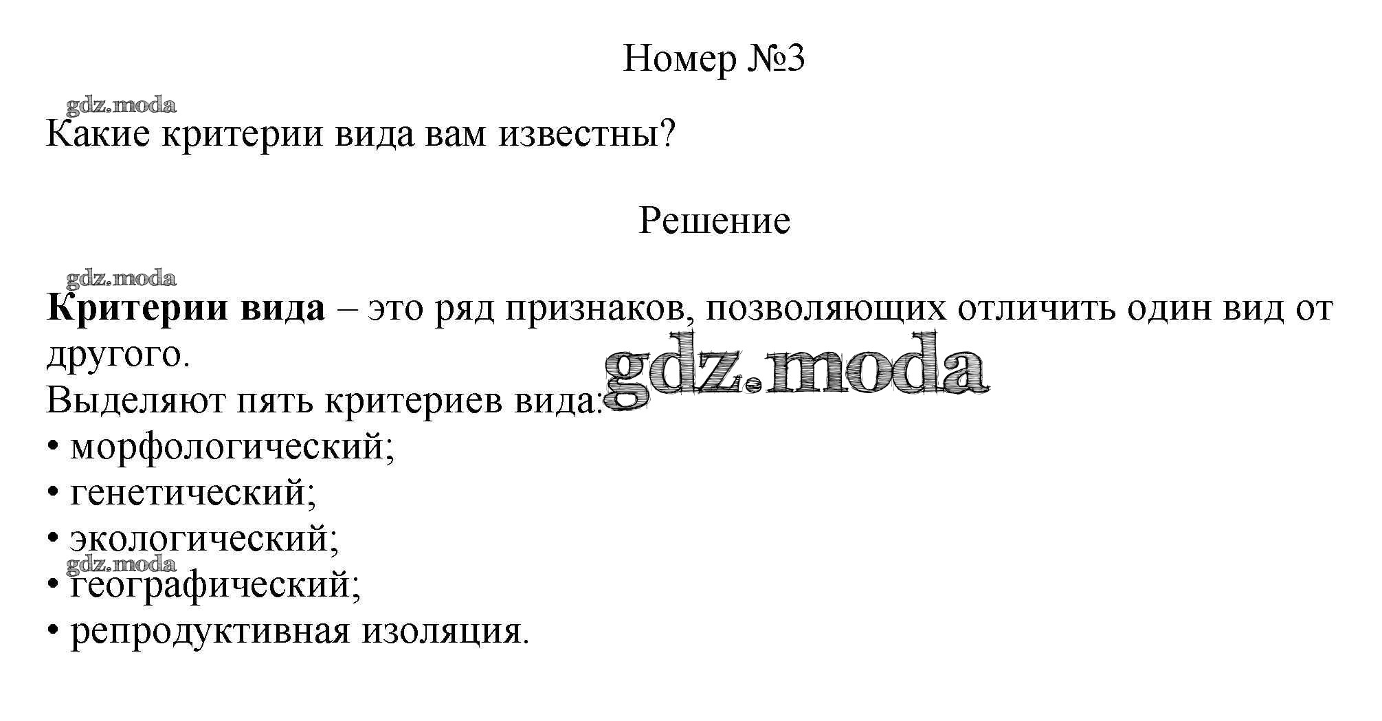 ГДЗ решение к заданию № 3 Биология 11 класс Пасечник (Базовый уровень) Просвещение 2018 Базовый уровень ФГОС бесплатно на гдз.мода!