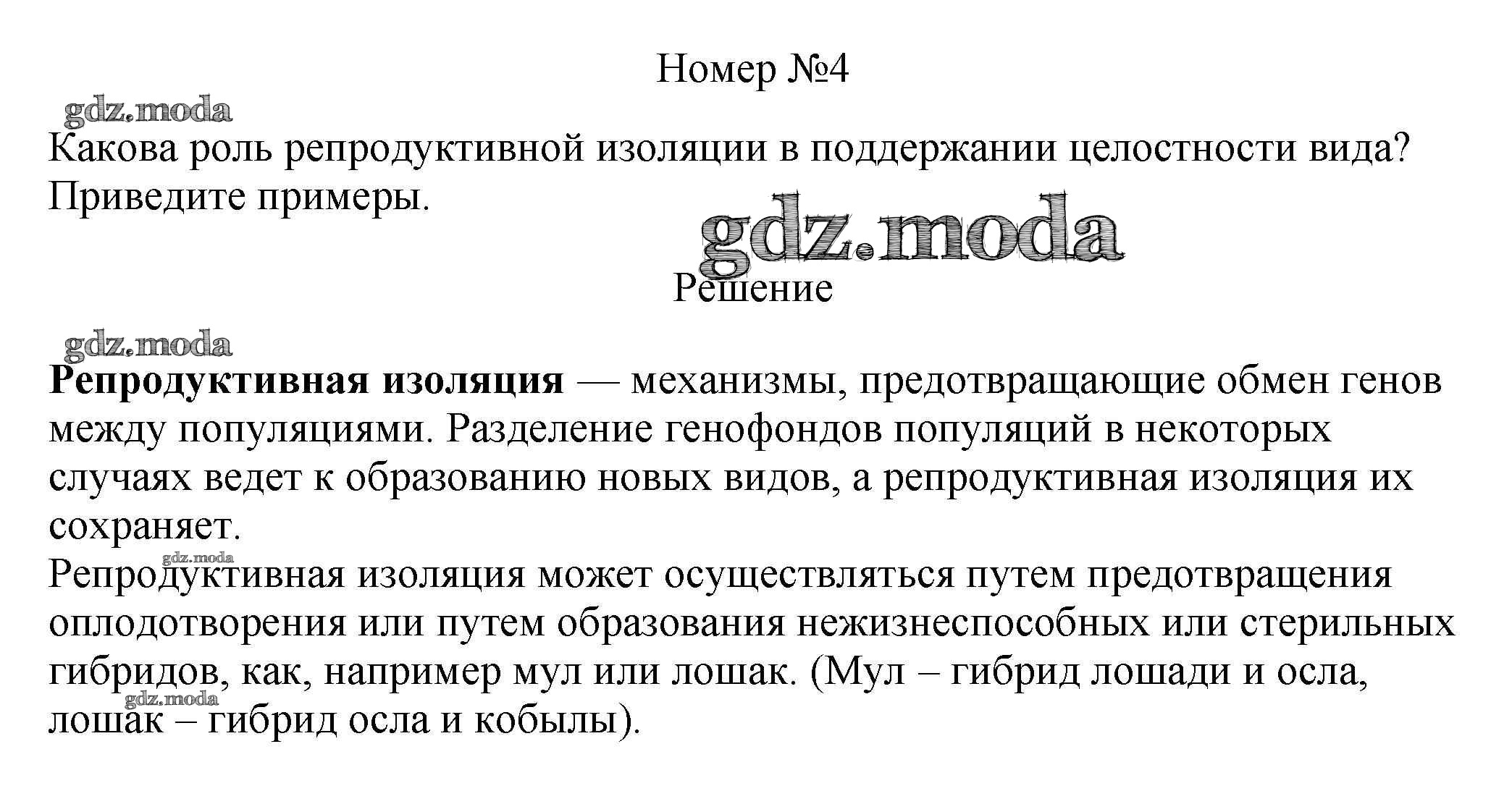 ГДЗ решение к заданию № 4 Биология 11 класс Пасечник (Базовый уровень) Просвещение 2018 Базовый уровень ФГОС бесплатно на гдз.мода!