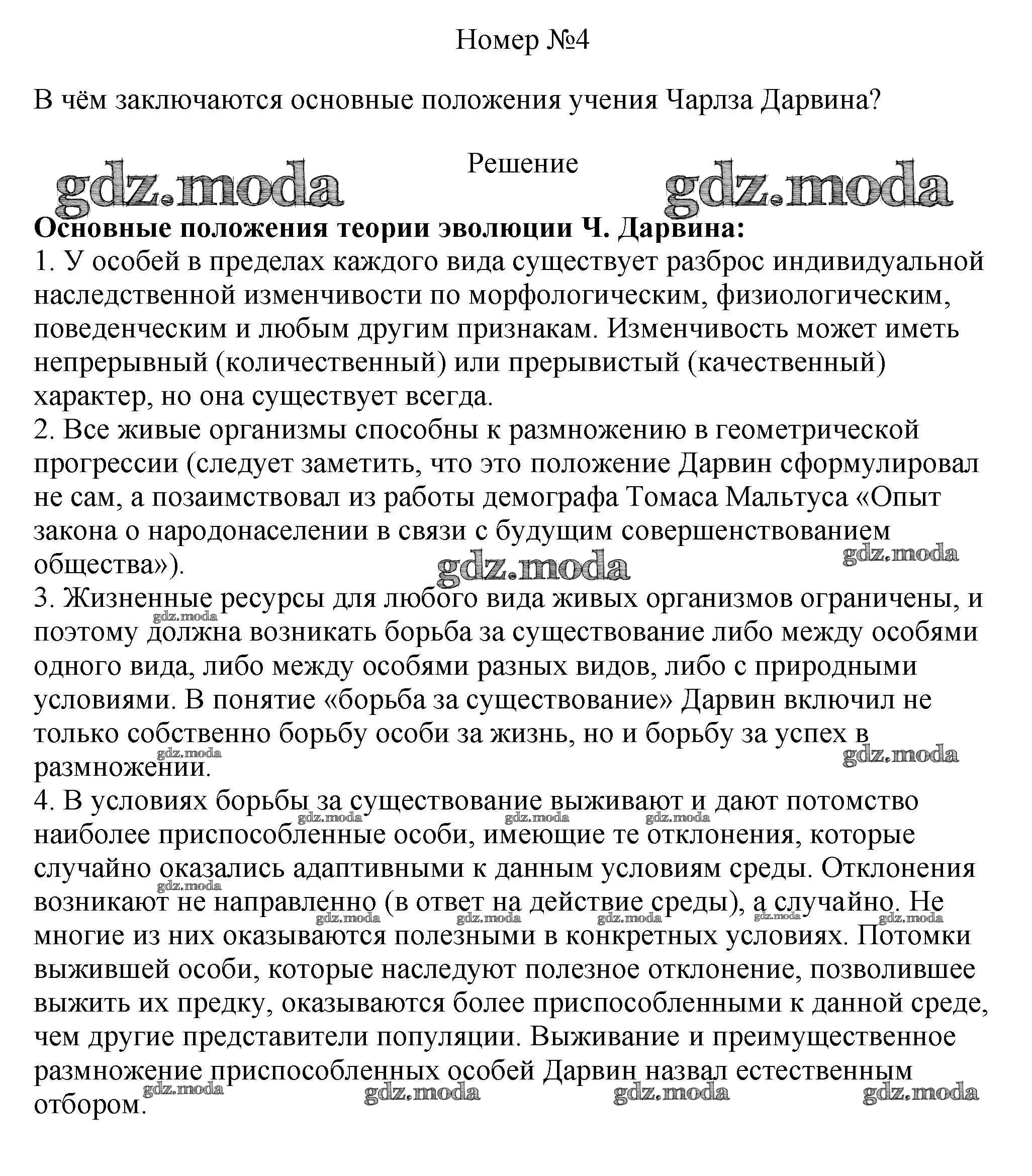 ГДЗ решение к заданию № 4 Биология 11 класс Пасечник (Базовый уровень) Просвещение 2018 Базовый уровень ФГОС бесплатно на гдз.мода!