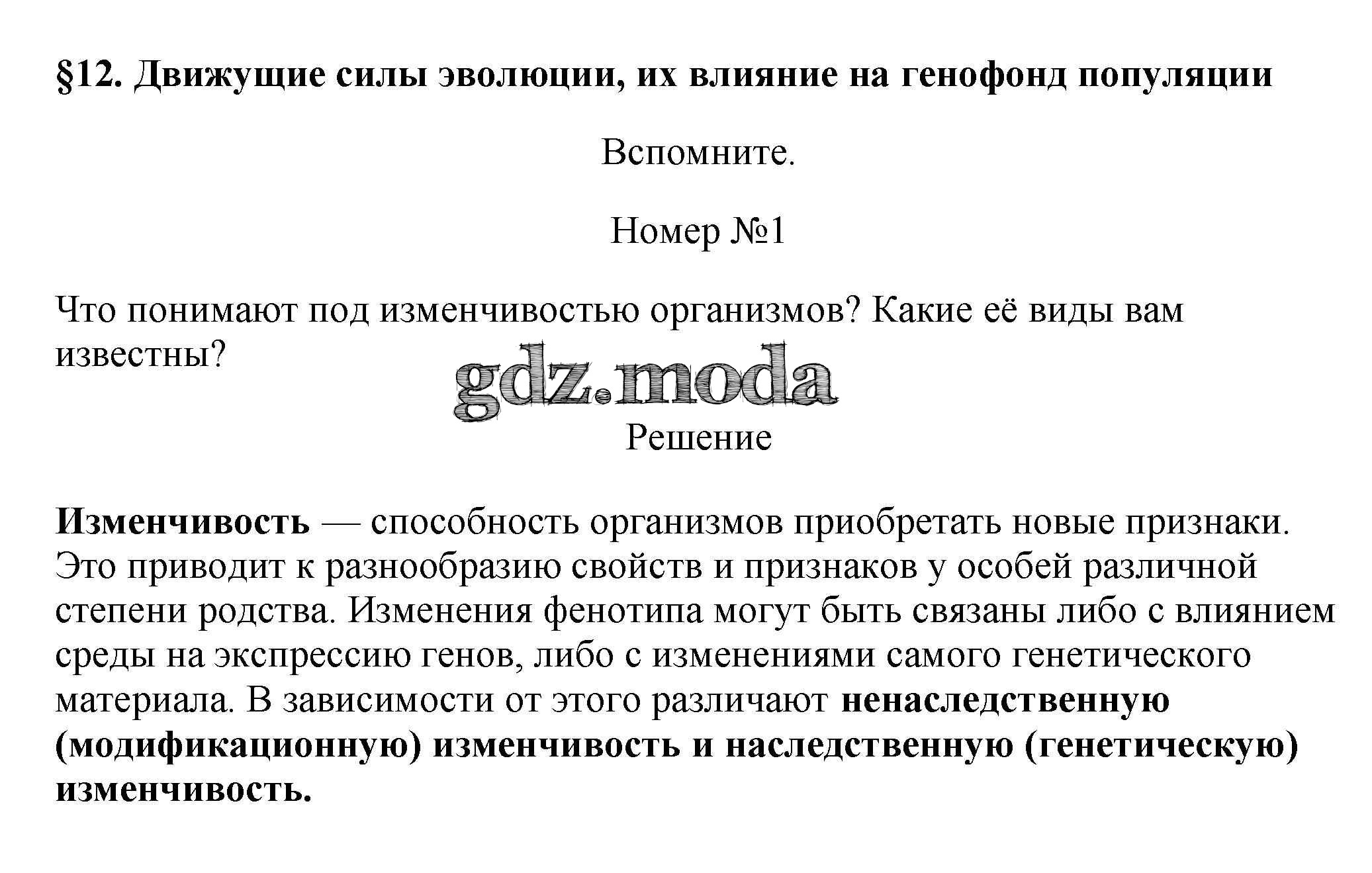 §12. движущие силы эволюции, их влияние на генофонд популяции / вспомните / 1