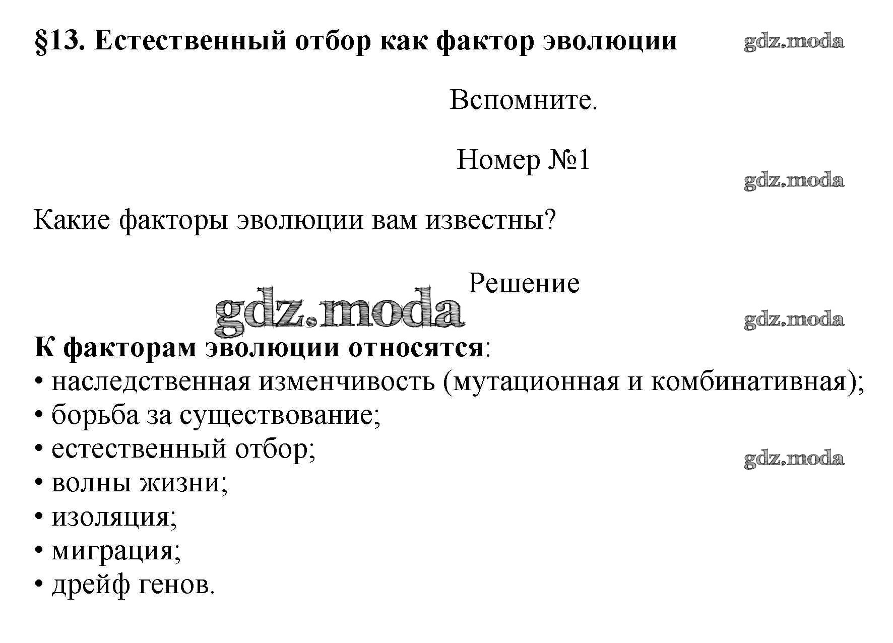 §13. естественный отбор как фактор эволюции / вспомните / 1