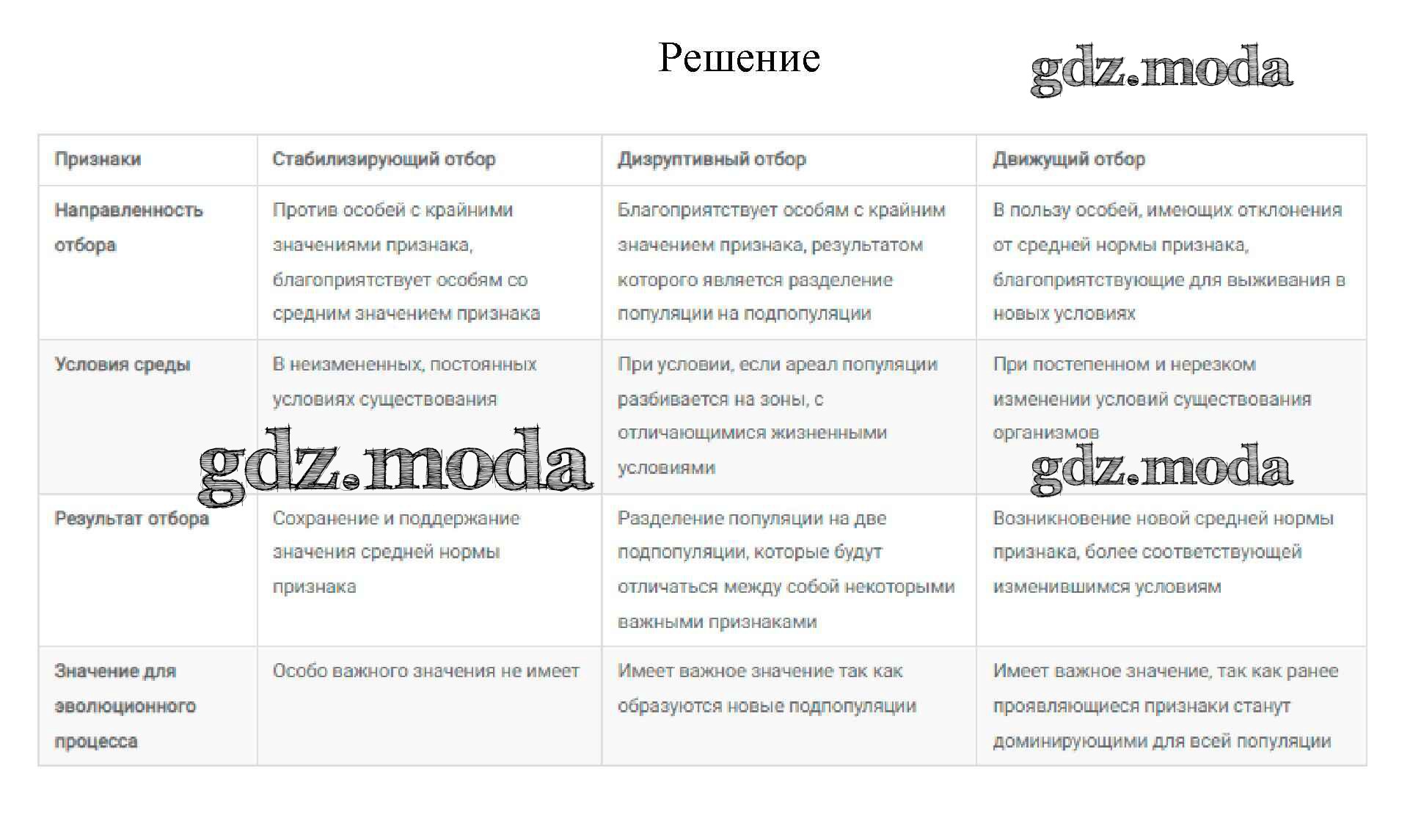ГДЗ решение к заданию № 2 Биология 11 класс Пасечник (Базовый уровень) Просвещение 2018 Базовый уровень ФГОС бесплатно на гдз.мода!
