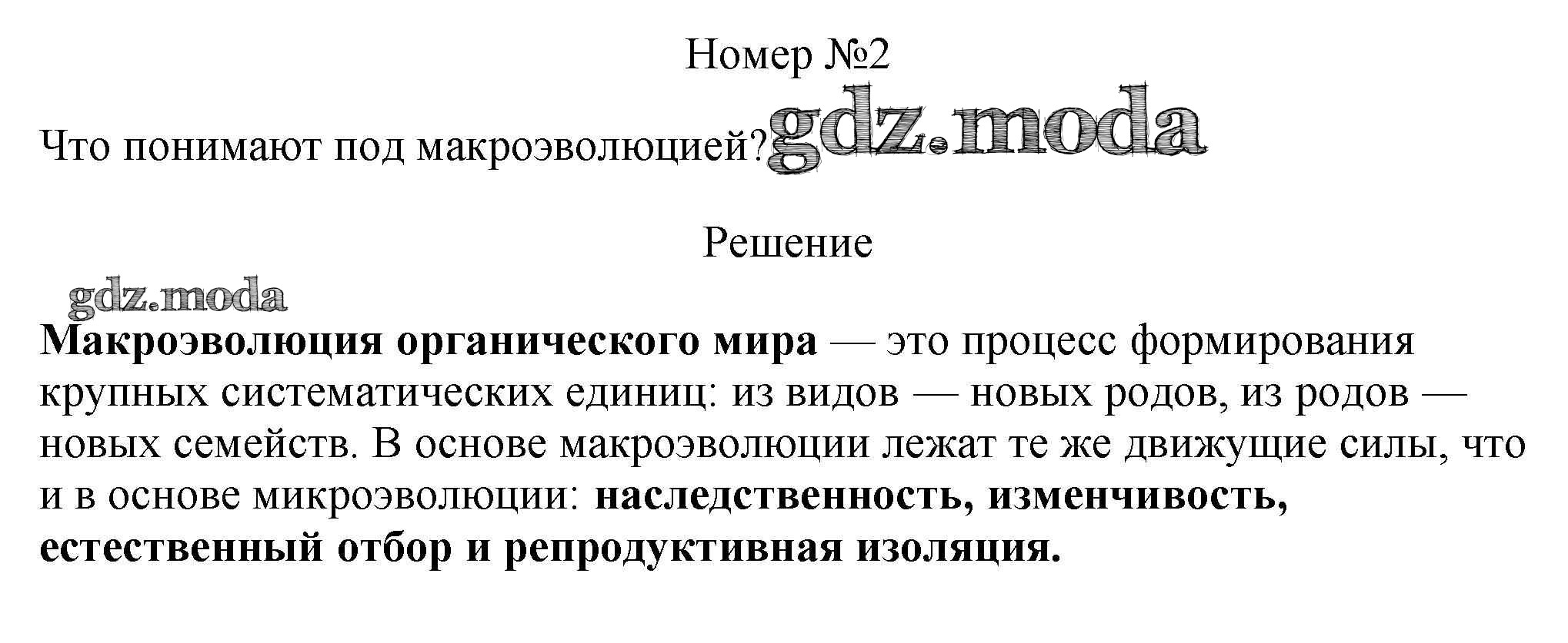 ГДЗ решение к заданию № 2 Биология 11 класс Пасечник (Базовый уровень) Просвещение 2018 Базовый уровень ФГОС бесплатно на гдз.мода!