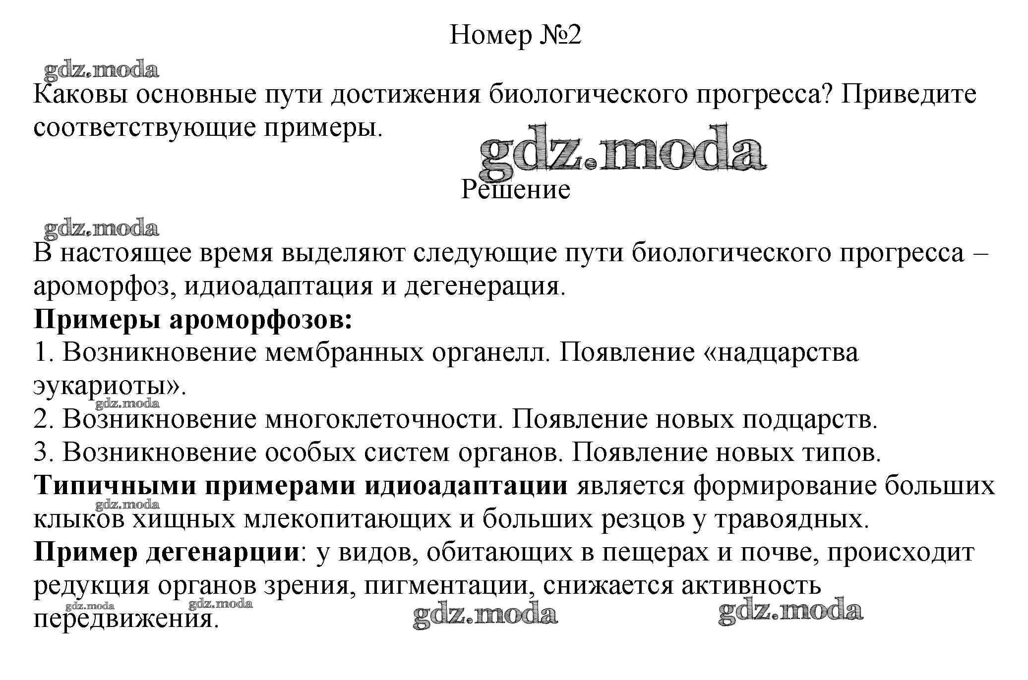 ГДЗ решение к заданию № 2 Биология 11 класс Пасечник (Базовый уровень) Просвещение 2018 Базовый уровень ФГОС бесплатно на гдз.мода!