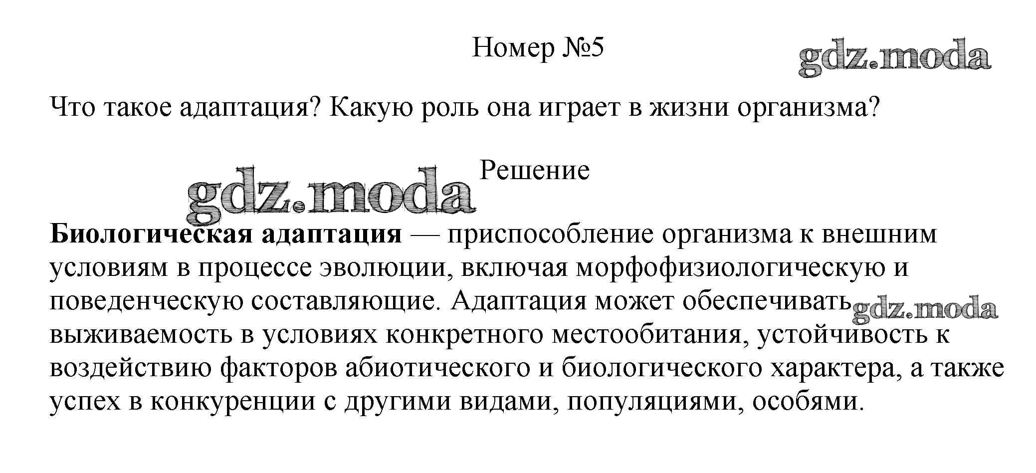 ГДЗ решение к заданию № 5 Биология 11 класс Пасечник (Базовый уровень) Просвещение 2018 Базовый уровень ФГОС бесплатно на гдз.мода!