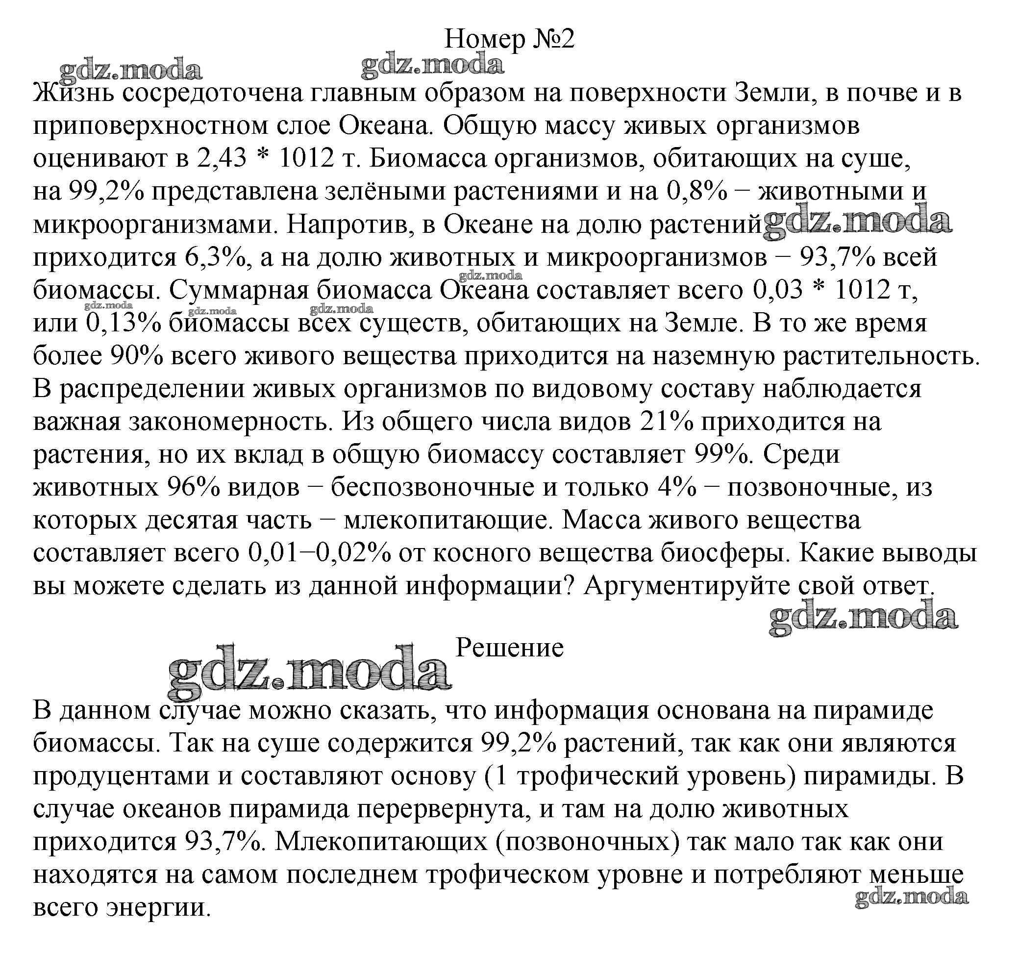 ОТВЕТ на задание № 2 Учебник по Биологии 11 класс Пасечник Линия жизни Базовый уровень