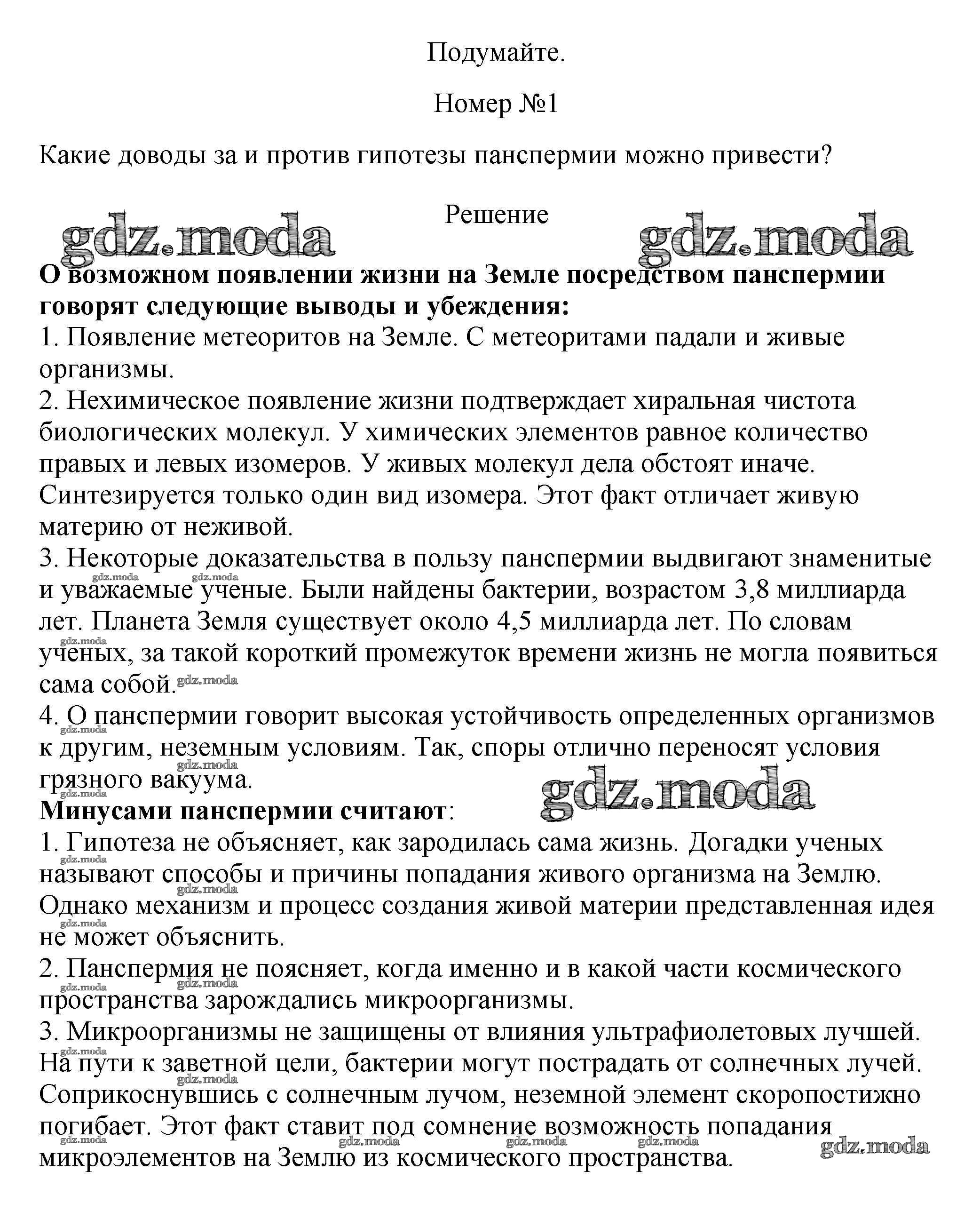 ГДЗ решение к заданию № 1 Биология 11 класс Пасечник (Базовый уровень) Просвещение 2018 Базовый уровень ФГОС бесплатно на гдз.мода!