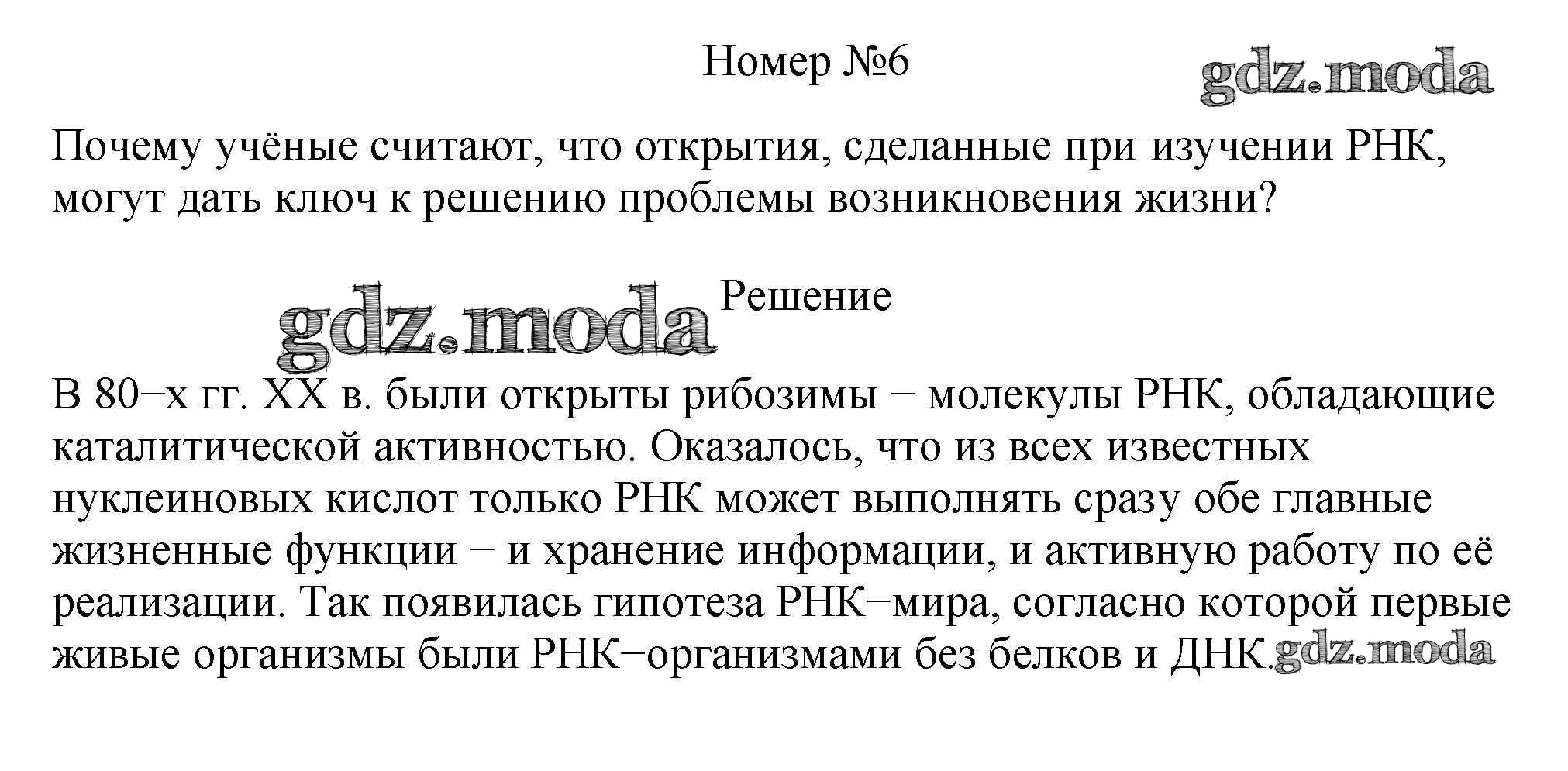ГДЗ решение к заданию № 6 Биология 11 класс Пасечник (Базовый уровень) Просвещение 2018 Базовый уровень ФГОС бесплатно на гдз.мода!