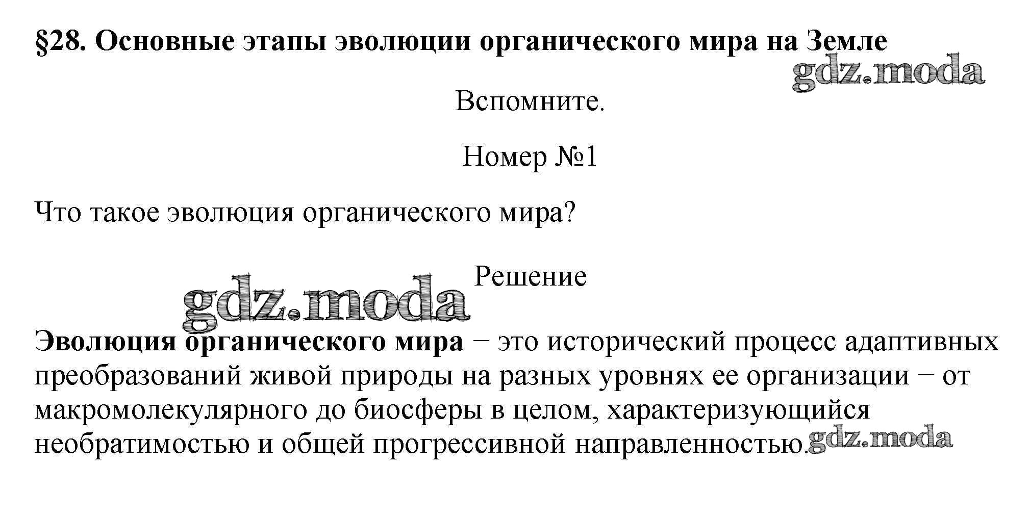 §28. основные этапы эволюции органического мира на Земле / вспомните / 1
