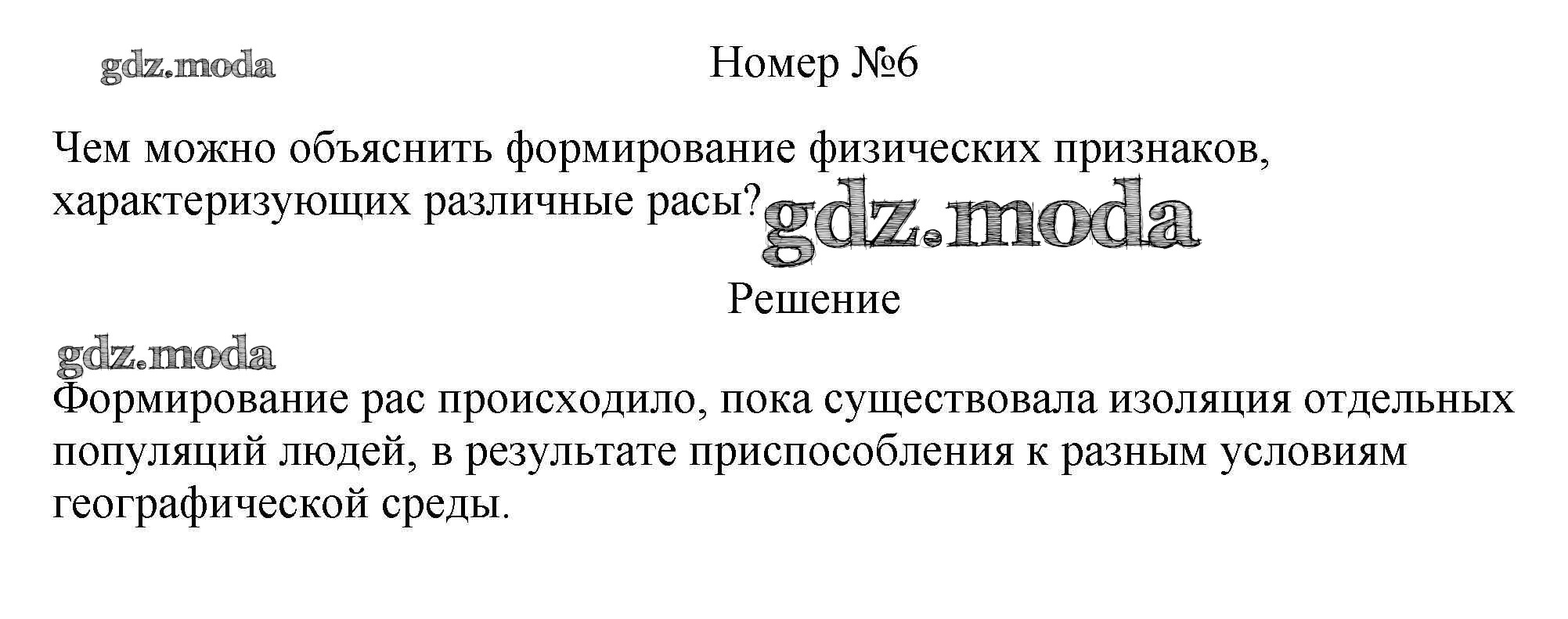 ГДЗ решение к заданию № 6 Биология 11 класс Пасечник (Базовый уровень) Просвещение 2018 Базовый уровень ФГОС бесплатно на гдз.мода!
