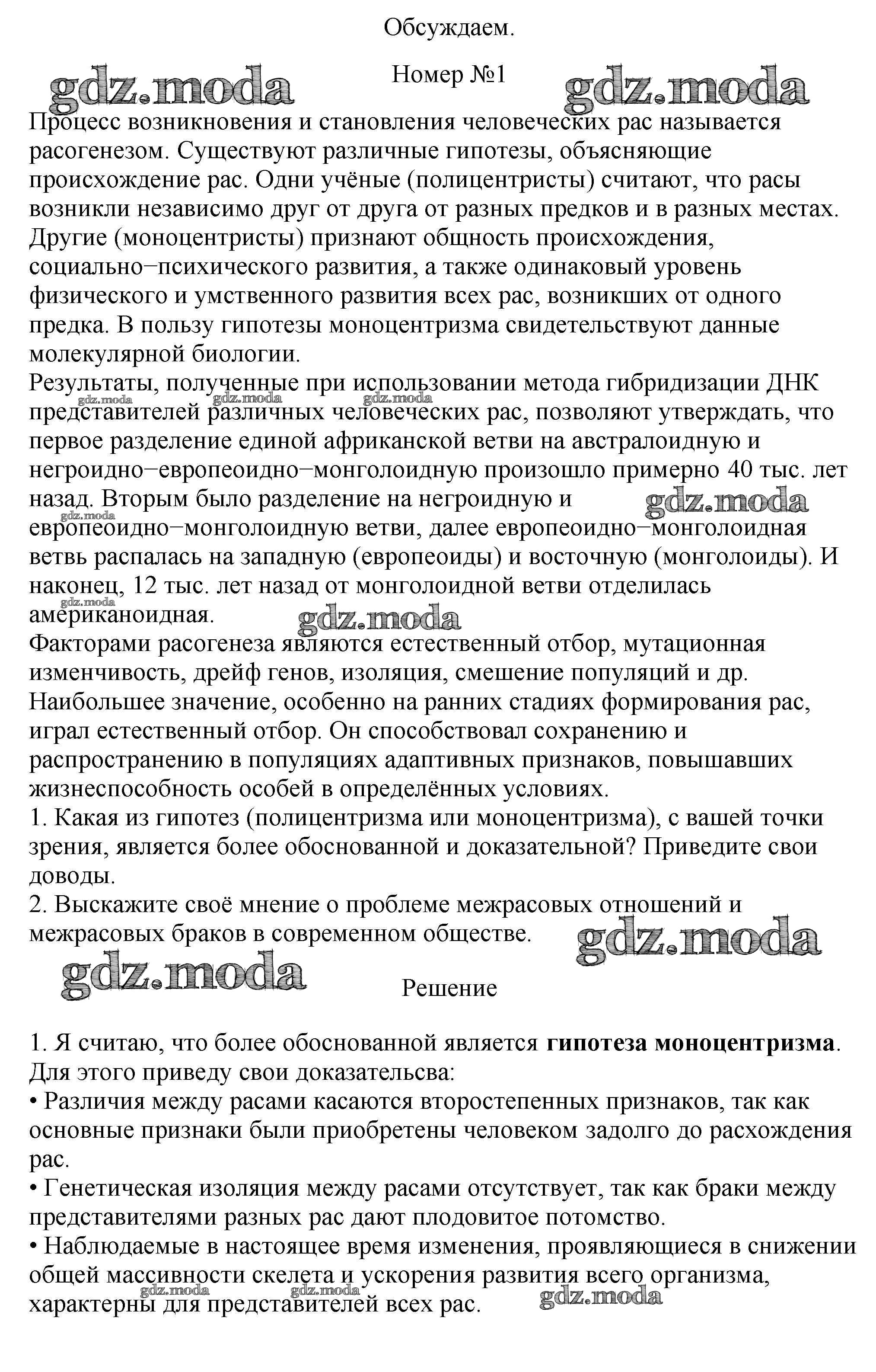 ГДЗ решение к заданию № 1 Биология 11 класс Пасечник (Базовый уровень) Просвещение 2018 Базовый уровень ФГОС бесплатно на гдз.мода!