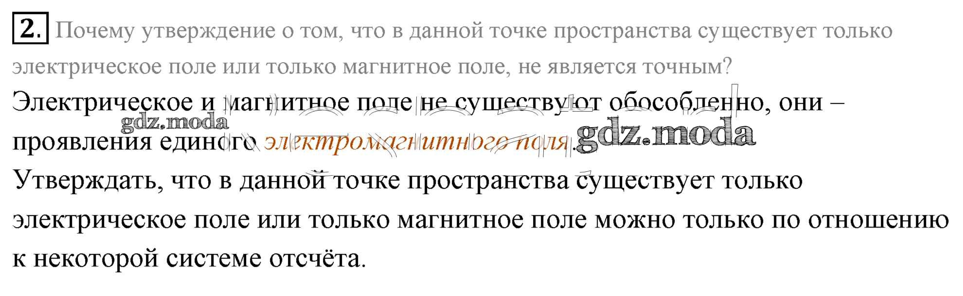 ГДЗ решение к заданию № 2 Физика 11 класс Мякишев Г.Я. Просвещение 2018 Базовый уровень ФГОС бесплатно на гдз.мода!