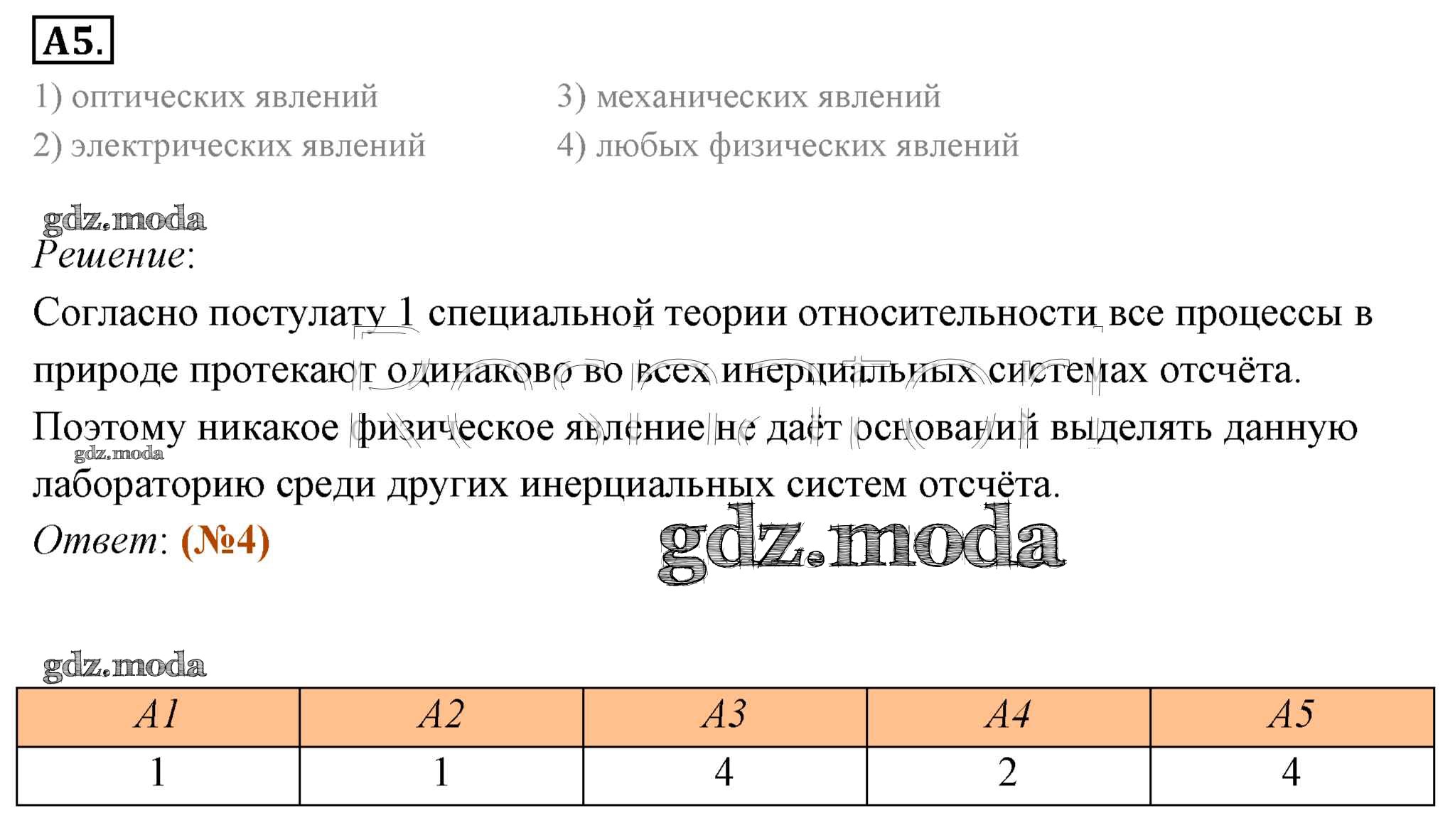 ОТВЕТ на задание № 5 Учебник по Физике 11 класс Мякишев Базовый уровень