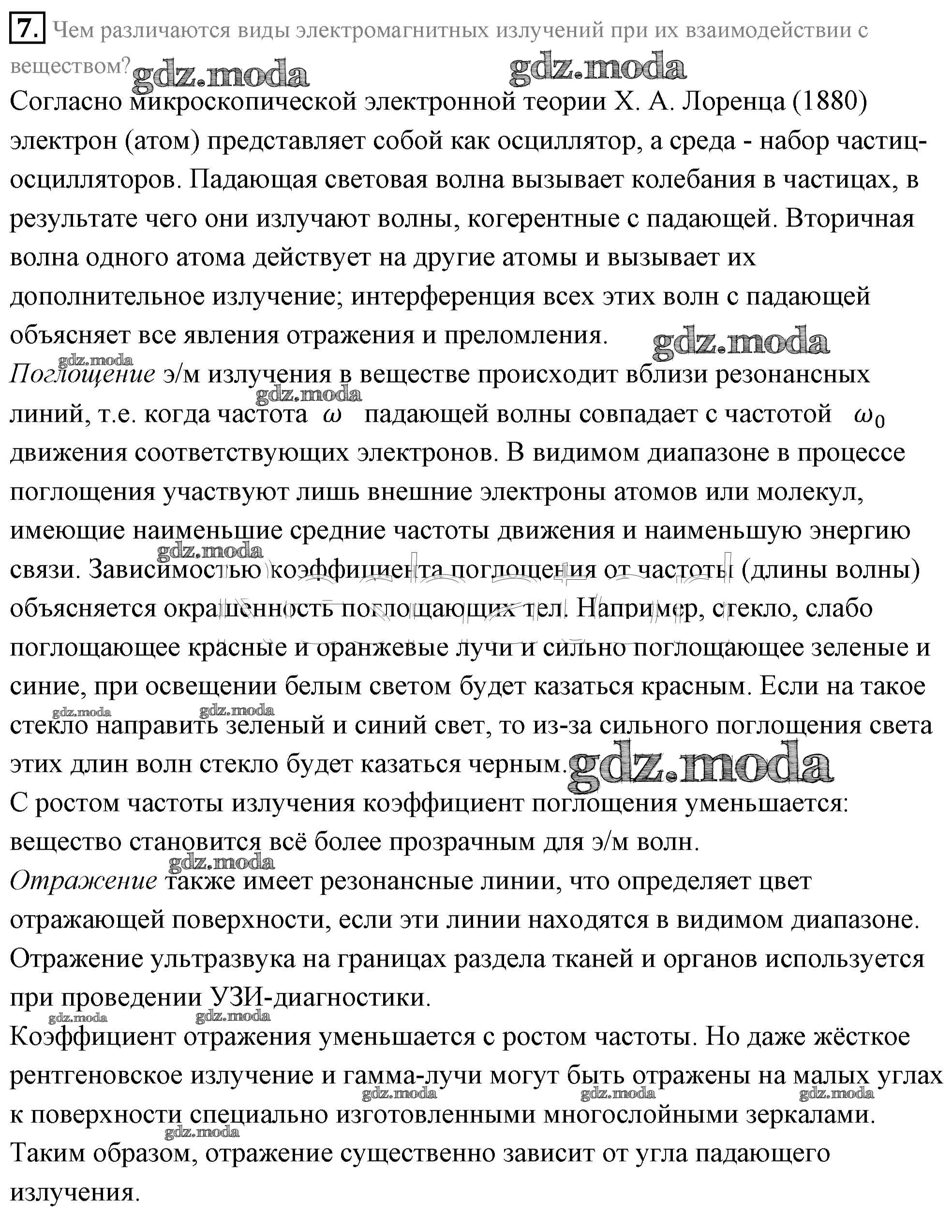 ГДЗ решение к заданию № 7 Физика 11 класс Мякишев Г.Я. Просвещение 2018 Базовый уровень ФГОС бесплатно на гдз.мода!