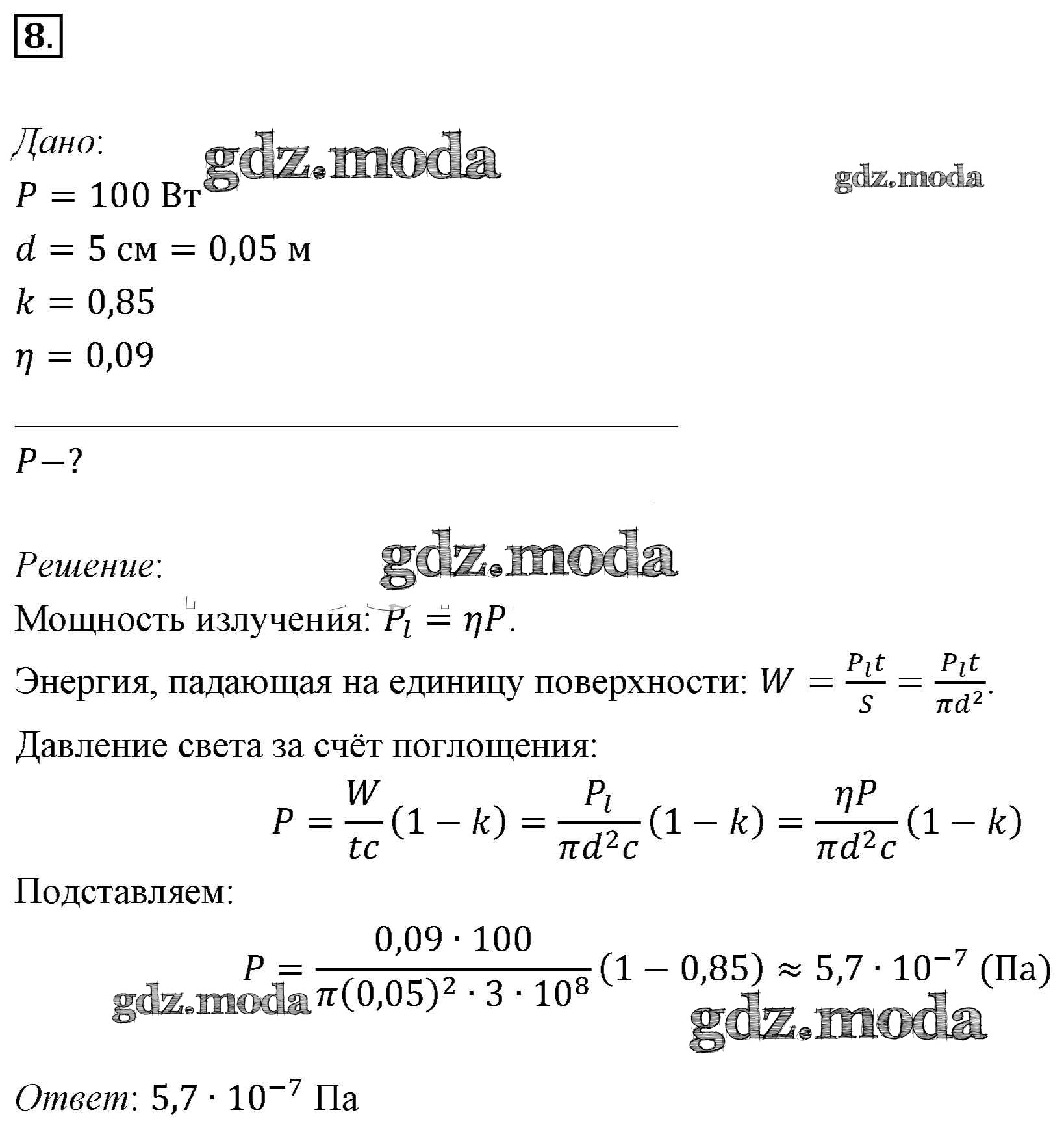 ГДЗ решение к заданию № 8 Физика 11 класс Мякишев Г.Я. Просвещение 2018 Базовый уровень ФГОС бесплатно на гдз.мода!