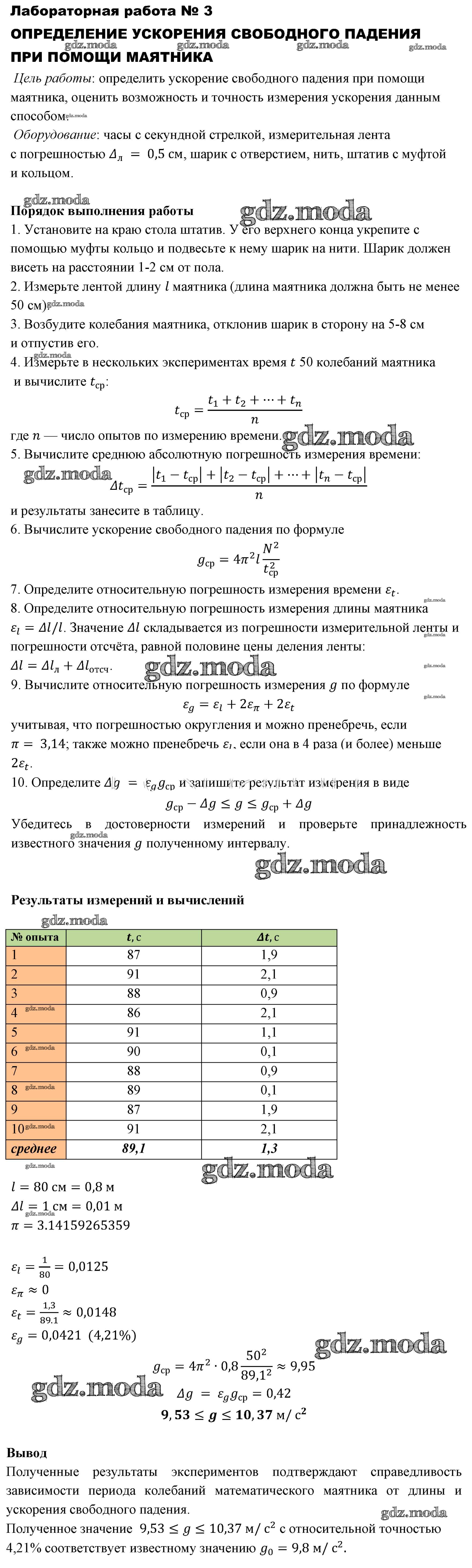 ОТВЕТ на задание № ЛР-3 Учебник по Физике 11 класс Мякишев Базовый уровень