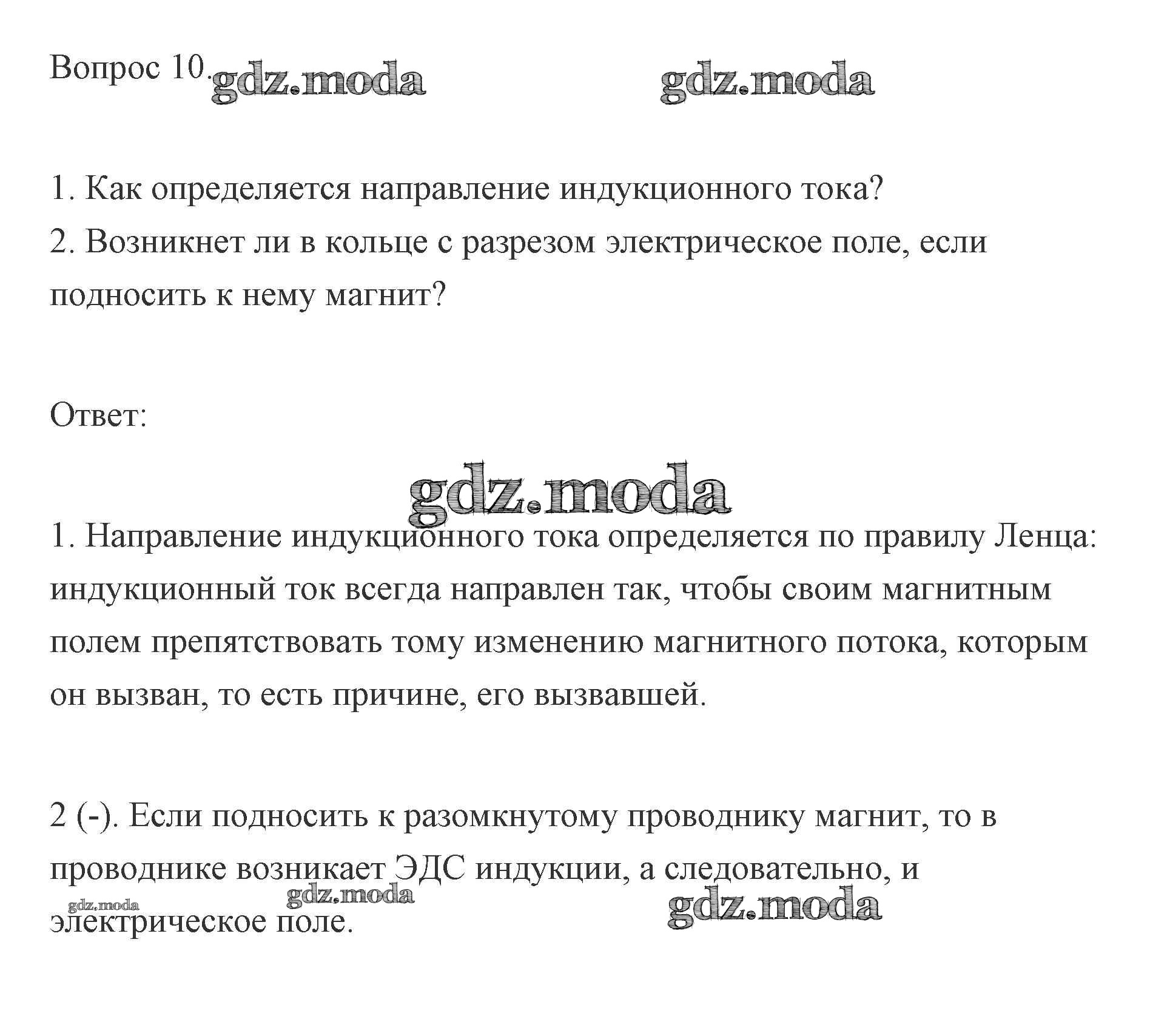 ОТВЕТ на задание № 10 Учебник по Физике 11 класс Мякишев Базовый и углубленный уровень