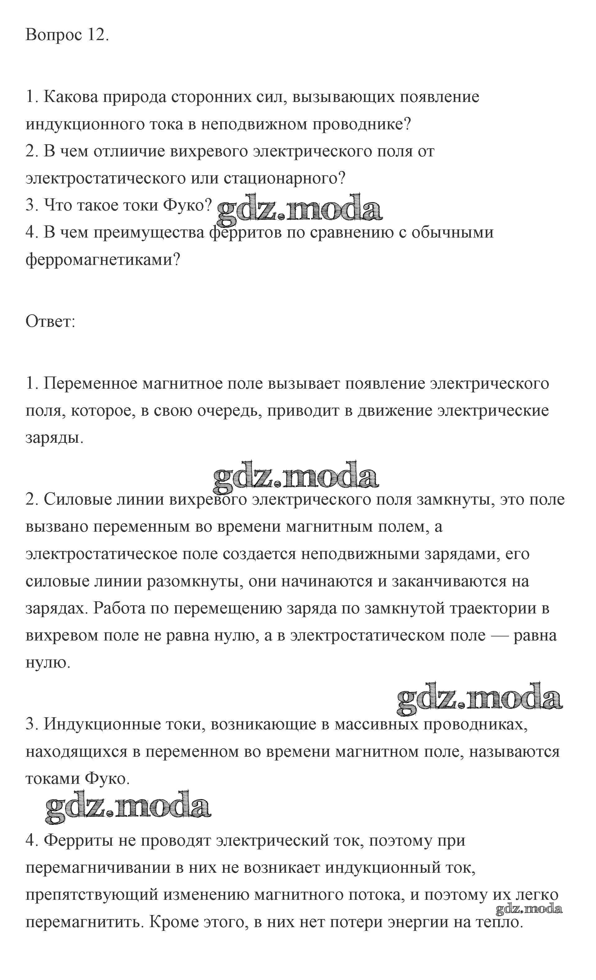 ОТВЕТ на задание № 12 Учебник по Физике 11 класс Мякишев Базовый и углубленный уровень