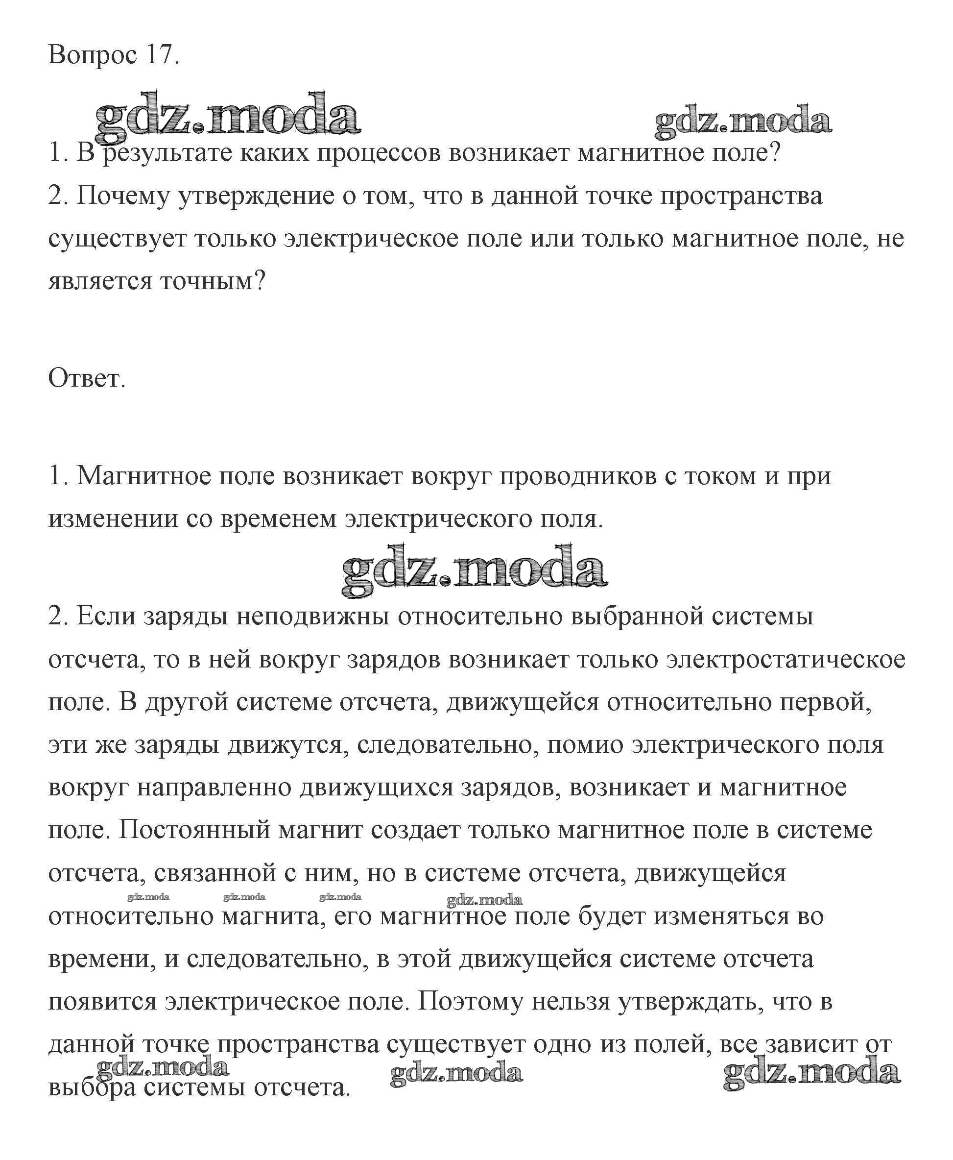 ОТВЕТ на задание № 17 Учебник по Физике 11 класс Мякишев Базовый и углубленный уровень